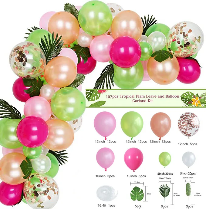 Надувные шары тропические, Гавайские, 107 шт., набор воздушные шары-гирлянды, Luau шар для украшения вечеринок, декор для вечевечерние, свадьбы, дня рождения, девичника