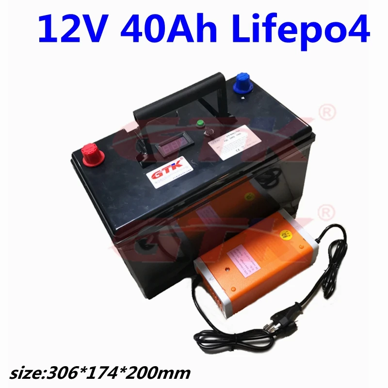 Аккумулятор GTK 12,8 В, 12 В, 40 А ч, Lifepo4, с мощной BMS, для запуска автомобиля + зарядное устройство 14,6 в, 5 А