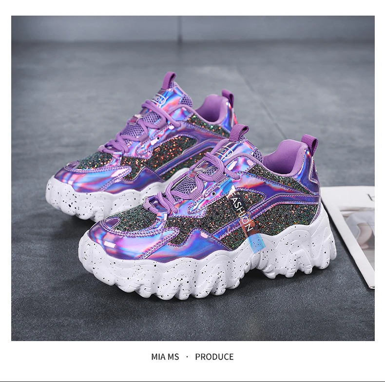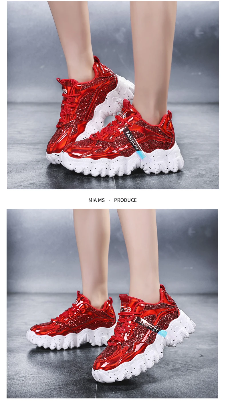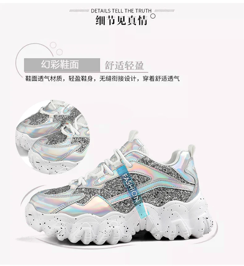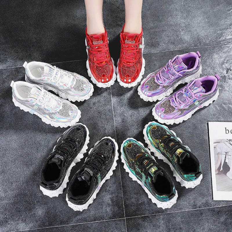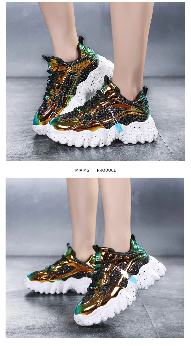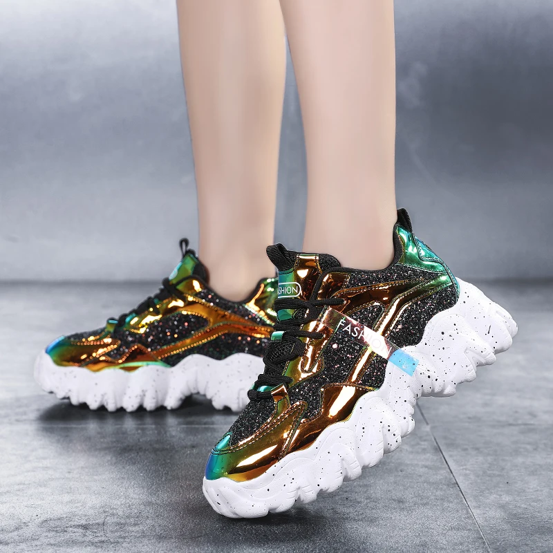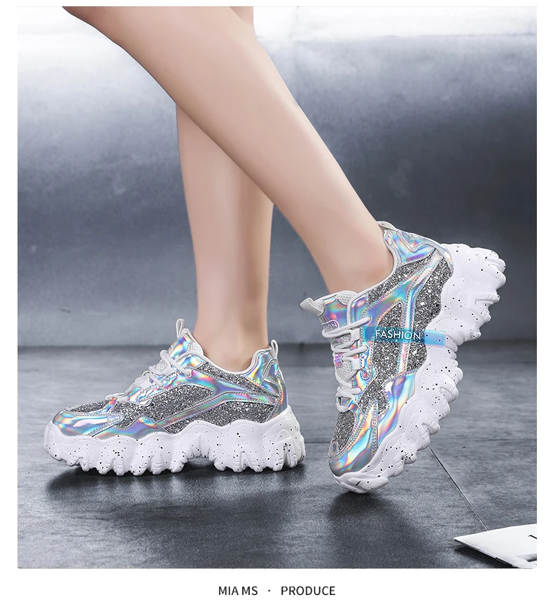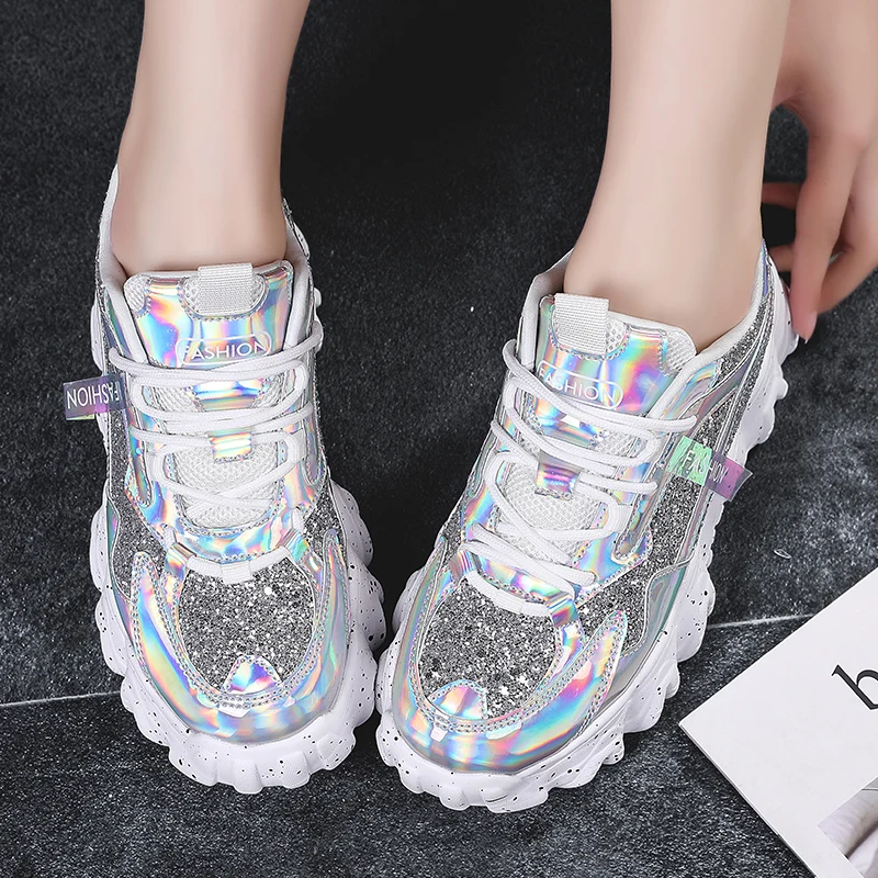 Кроссовки женские блестящие, повседневная обувь на плоской платформ...