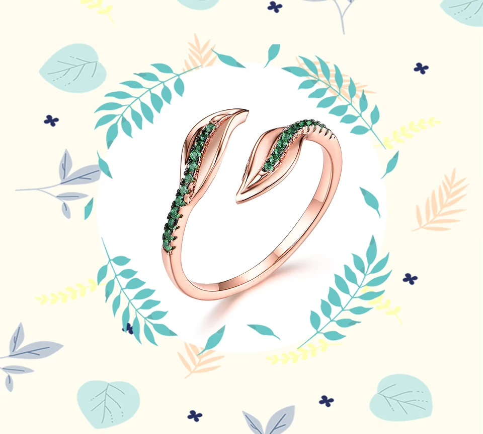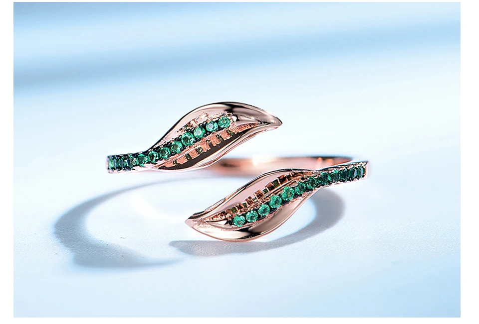 Женские кольца из стерлингового серебра 925 пробы UMCHO, регулируемые кольца с наноизумрудным листом, обручальные кольца, ювелирные украшения