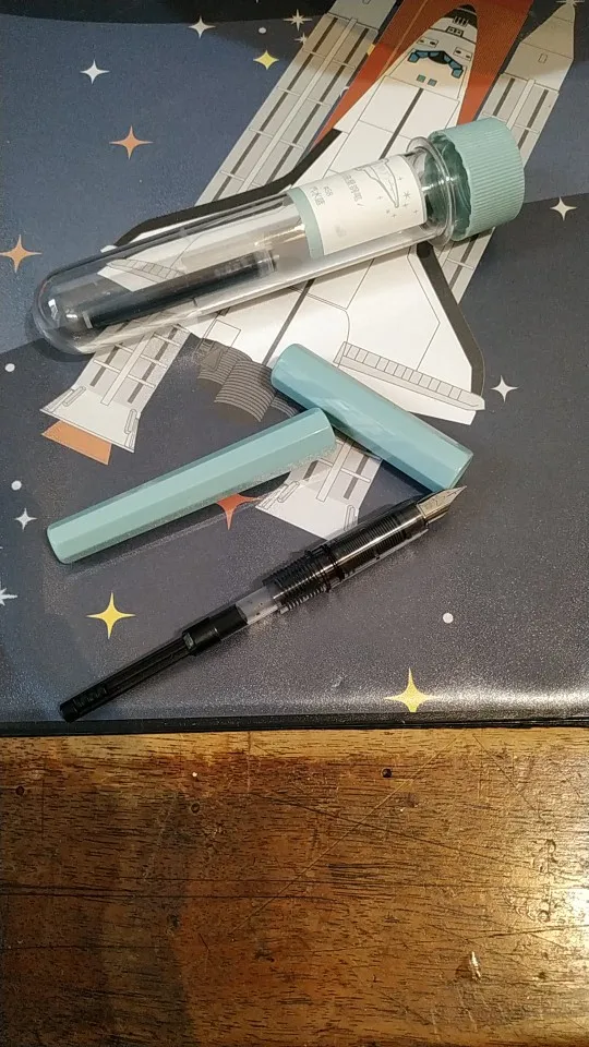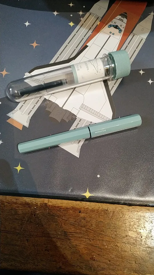 Доставка быстрая, упаковка ОООЧЕНЬ надёжная: капсула с ручкой в фирменной "бутылке", пакет, пупырка 3 слоя, картонная коробка и ещё пакет. Сама ручка неплохая: выглядит приятно, пишет без проблем, но я, в целом, ожидал большего. Перо явно толще чем F у Pilot Metropolitan, это факт. корпус приятный, но тонкостенный, ручку надо беречь чтобы не сломалась где-нибудь в кармане. Ну и да, фидерная часть, как по мне, толстовата, могла быть и тоньше, там ничего этому не мешает. В результате, пишешь будто маркером каким, а не перьевой ручкой. Если привыкли к чему-то потоньше, будет неудобно. Ну а так, если рассматривать ее как первую ручку, или в подарок кому-нибудь, то, наверное, в самый раз будет.
