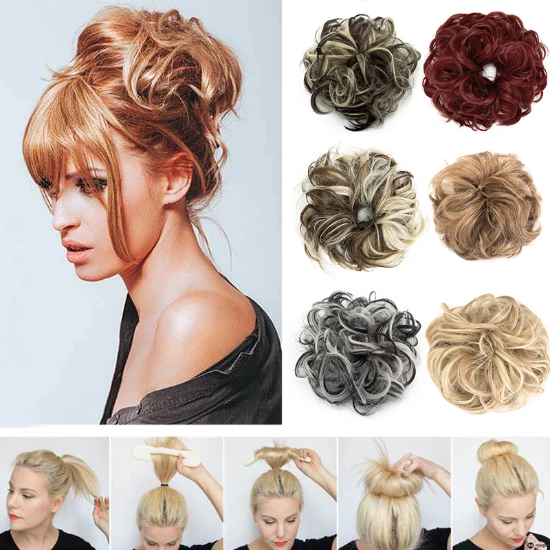 Пучок волосы для наращивания волнистые грязный пончик шиньоны волосы кусок парик, заколки, заколки для волос, трессы, заколки, грязный булочка, резинка для волос булочка грязный прическа гулька волосы icon star icon star icon star icon star icon star