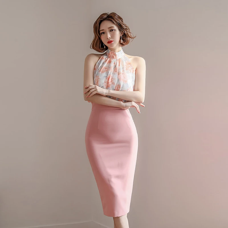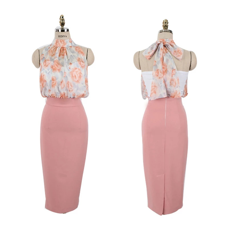 Женский комплект из двух предметов, элегантная Облегающая рубашка с принтом и облегающий Офисная Женская юбка-карандаш, простой элегантный летний комплект из двух предметов