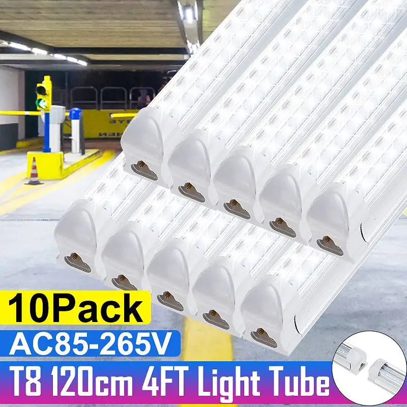 10 шт. T8 Светодиодная трубка 4 фута 120 см 36 Вт 4 фута двухрядная V-образная Светодиодная лампа для магазина, потолосветильник светильник для шкафа 6500K, белая фотолампа