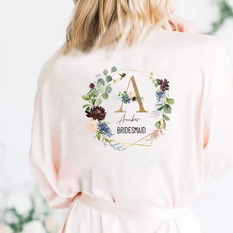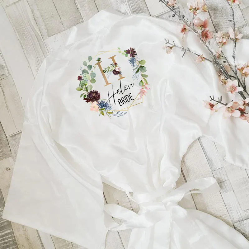 Свадебный Атласный халат, индивидуальное имя, цветочный принт