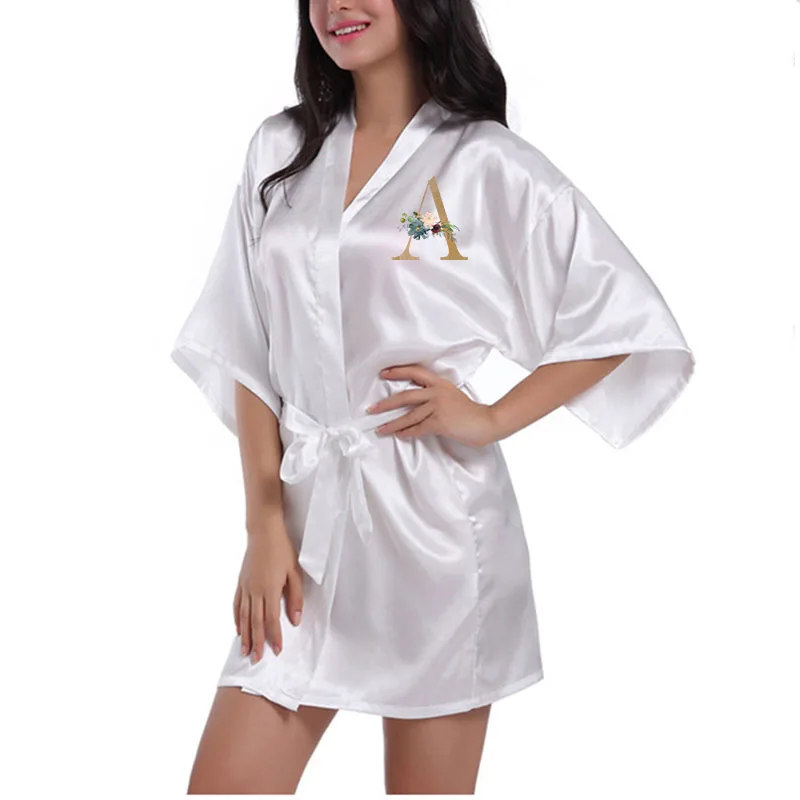 Индивидуальный Женский Атласный халат-кимоно с буквенным принтом и ...