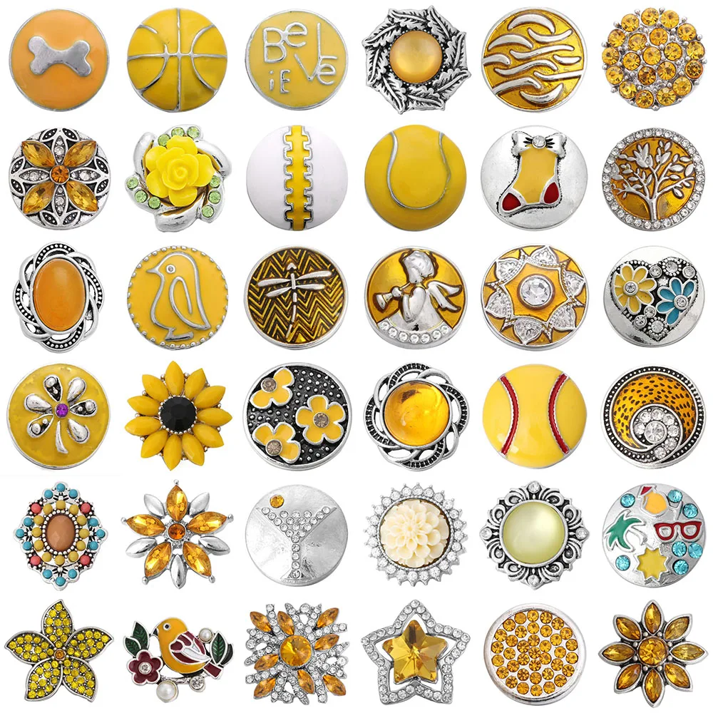 5 шт.лот, оптовая продажа, ювелирные изделия с застежкой, смешанные желтые стразы, 18 мм кнопки для застежки браслета, браслет, сменные ювелирные изделия