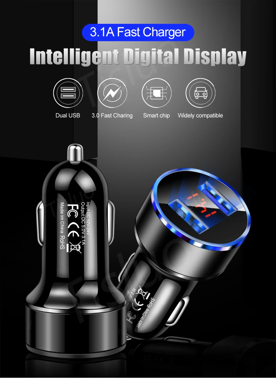 3.1A светодиодный дисплей двойное автомобильное зарядное устройство...