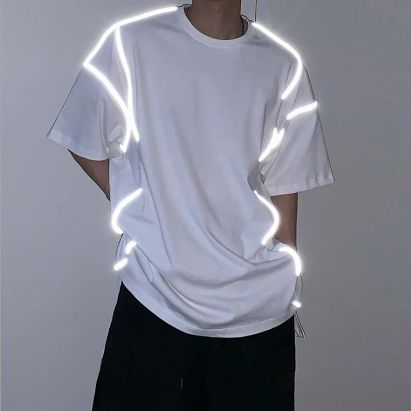 Прямая поставка, индивидуальная Светоотражающая футболка, Мужская футболка в стиле Харадзюку, модная повседневная футболка с круглым вырезом и коротким рукавом, мужские футболки, топы