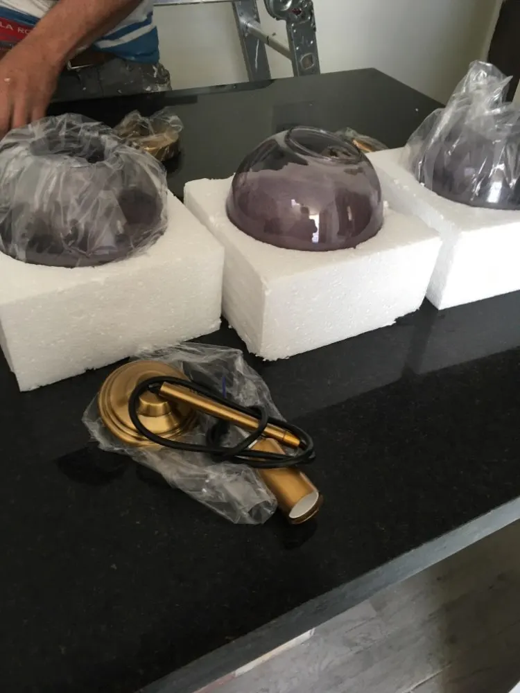 Св⅞етильники мне понравились. Сделаны довольно качественно. плафоны стеклянные, на вид, круглые, шарообразные, а на ощупь есть неровности на стекле. Хотя визуально все очень красиво. Светильники стоят своих денег.