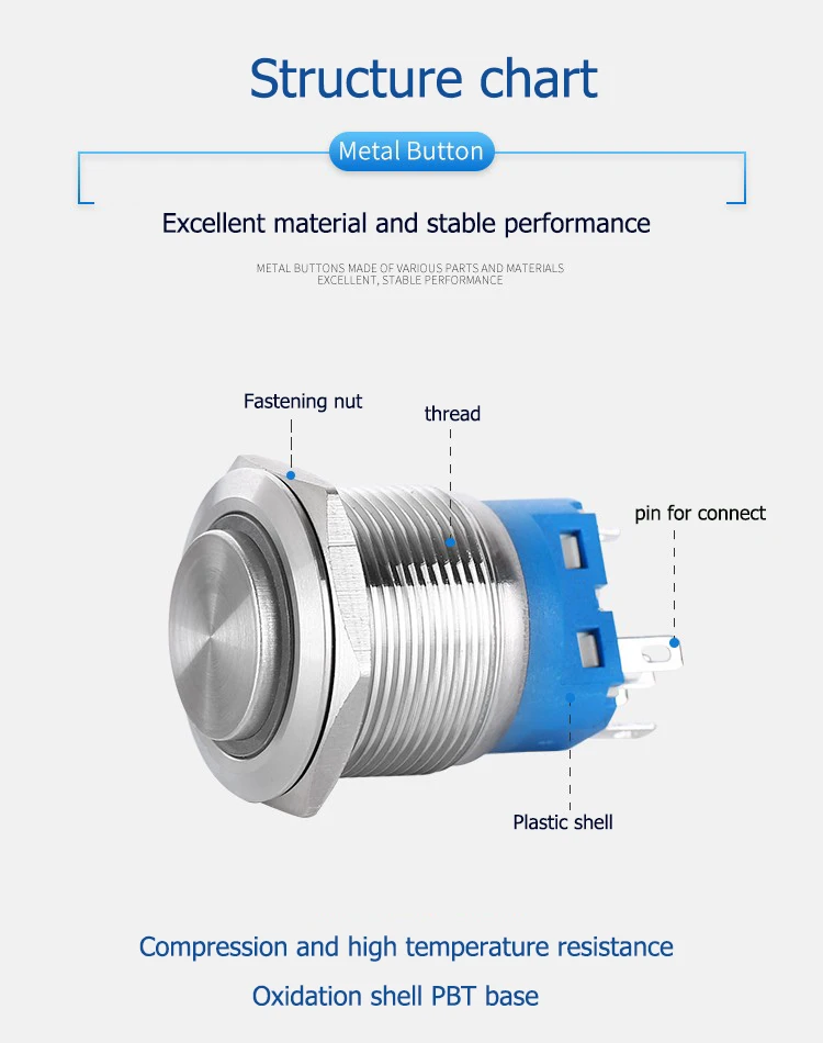 16 мм металлический кнопочный переключатель автомобиля Кнопка питания 1NO1NC мгновенный светодиодный Водонепроницаемый самоблокирующийся 220 в 3-6 в 12 В 24 В