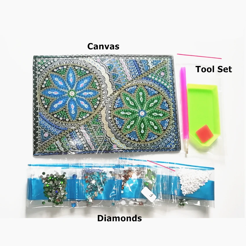 Это новое применение алмазной картины 5D «сделай сам». Размер холста 20x14 см, на котором напечатаны геометрические узоры и сетки, отмеченные разными жеребьями или буквами. Один мумбер или буква совпадают с одним видом акриловых алмазов. Когда вы используете ручку для приклеивания каждого диаметра к своему месту, вы получите красивый рисунок, который приклеен к из искусственной кожи защитной обложке, чтобы сделать его шикарным покрытием к блокноту или паспорту. Разве не модно иметь такой блокнот или паспорт под рукой? Это наверняка будет прекрасным подарком, вам не нравится? Примечание: используемые алмазы не являются обычными круглыми или квадратными алмазами, поэтому было бы немного иным опытом сверления алмазов в полости, алмазы красивой и уникальной формы, стоит попробовать!
