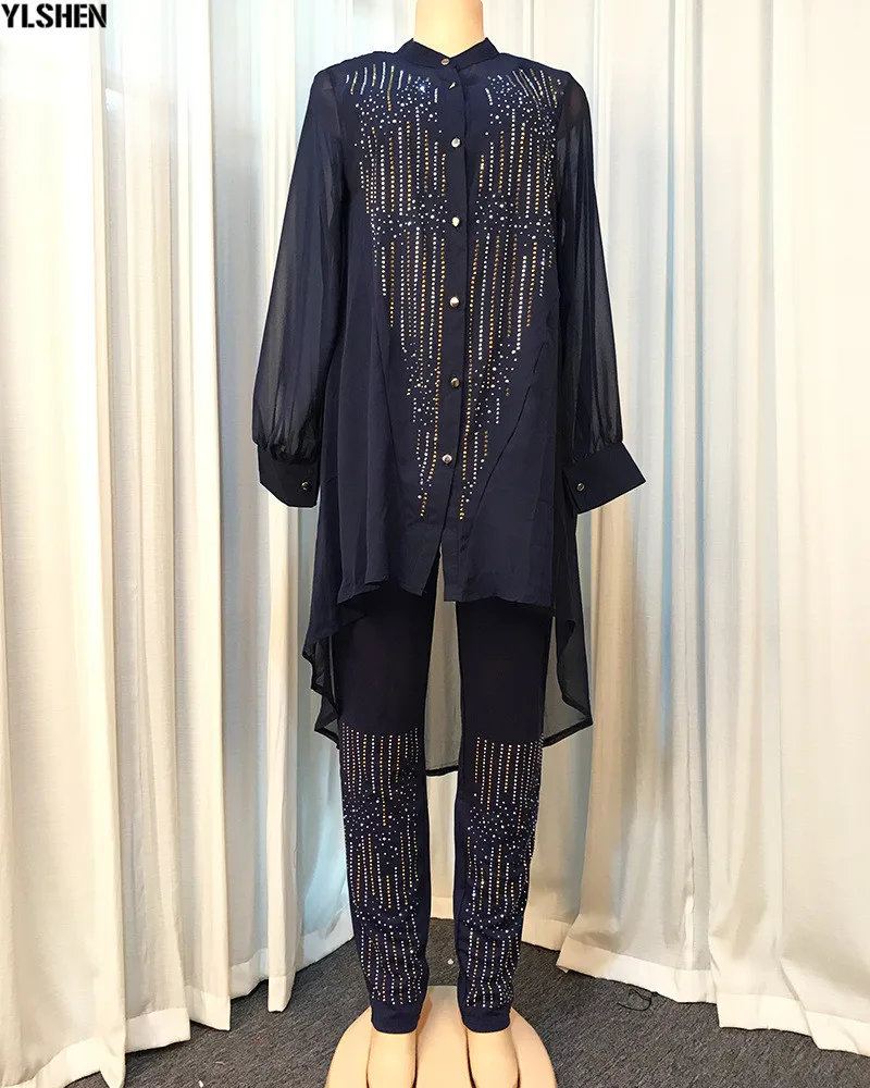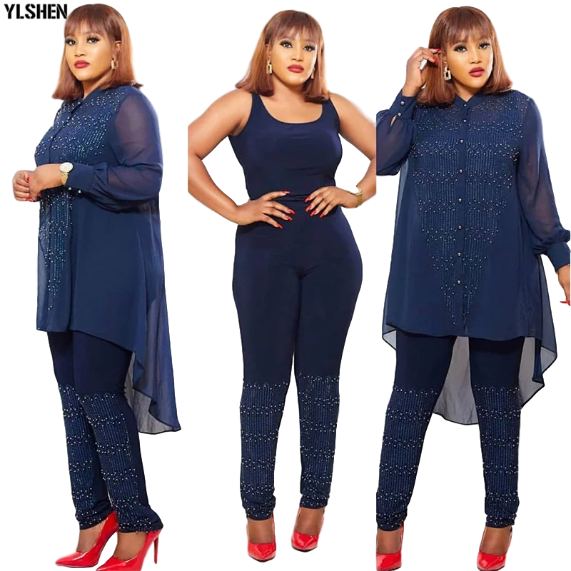 Комплект из 3 предметов, африканские платья для женщин, платье в африканском стиле с пуговицами и бриллиантами, облегающий топ + штаны, одежда размера плюс, одежда в африканском стиле
