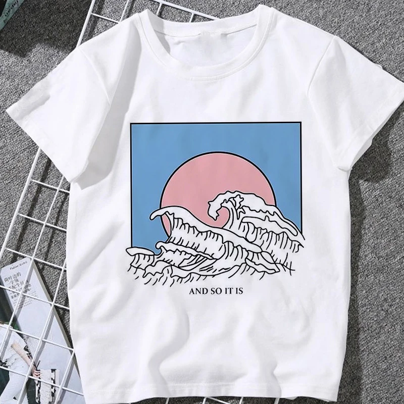 Футболка женская с принтом So It Is Ocean The Great Wave, Модный повседневный Топ в стиле Харадзюку, большие размеры, на лето