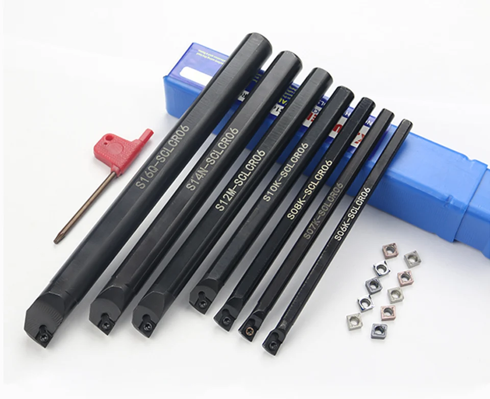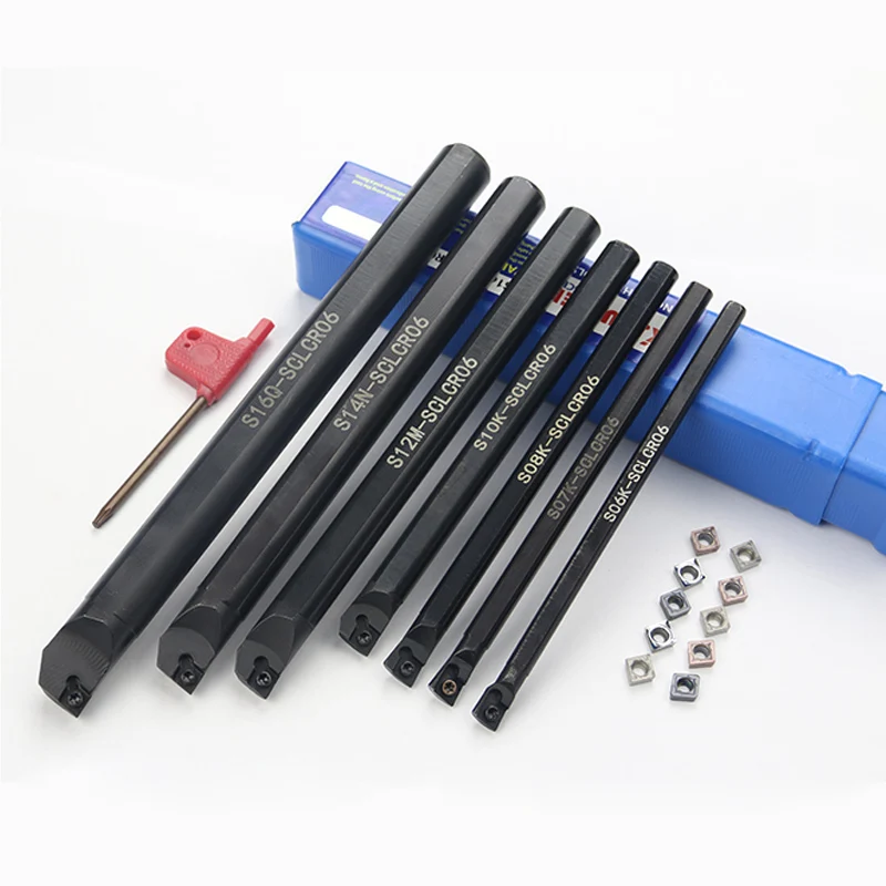 1 шт. S07K-SCLCR06 + 1 шт. S10K-SCLCR06 + 1 шт. S12M-SCLCR06 Держатель токарный инструмент расточный стержень 7101216 мм + 10 шт. вставки CCMT0602
