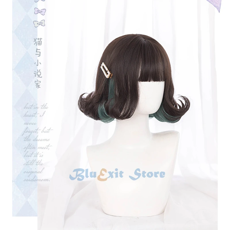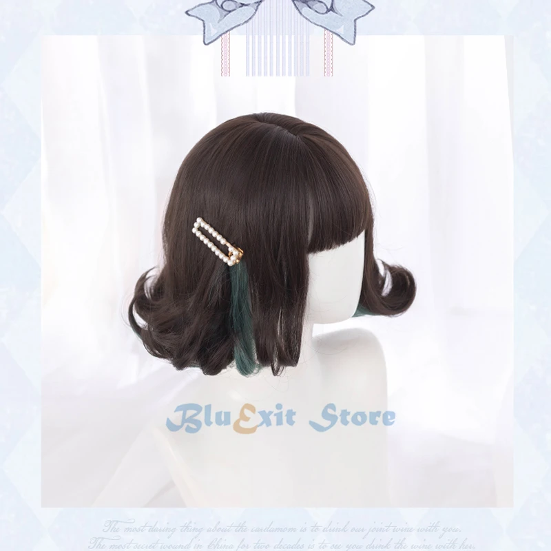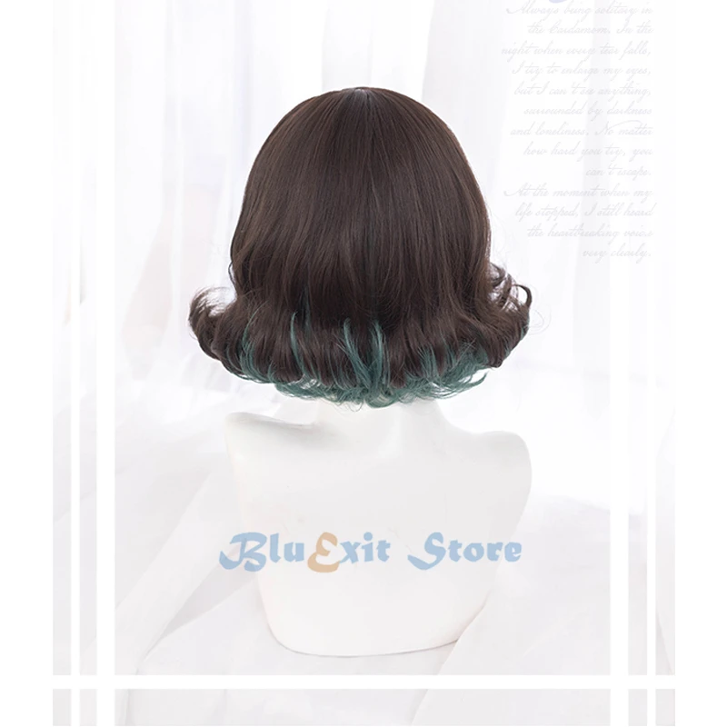 Парик Лолиты в стиле Харадзюку, смешанные Черные, коричневые, Зеленые Короткие вьющиеся синтетические волосы в стиле Бобо, с обратной волной, с бахромой, для взрослых и девушек