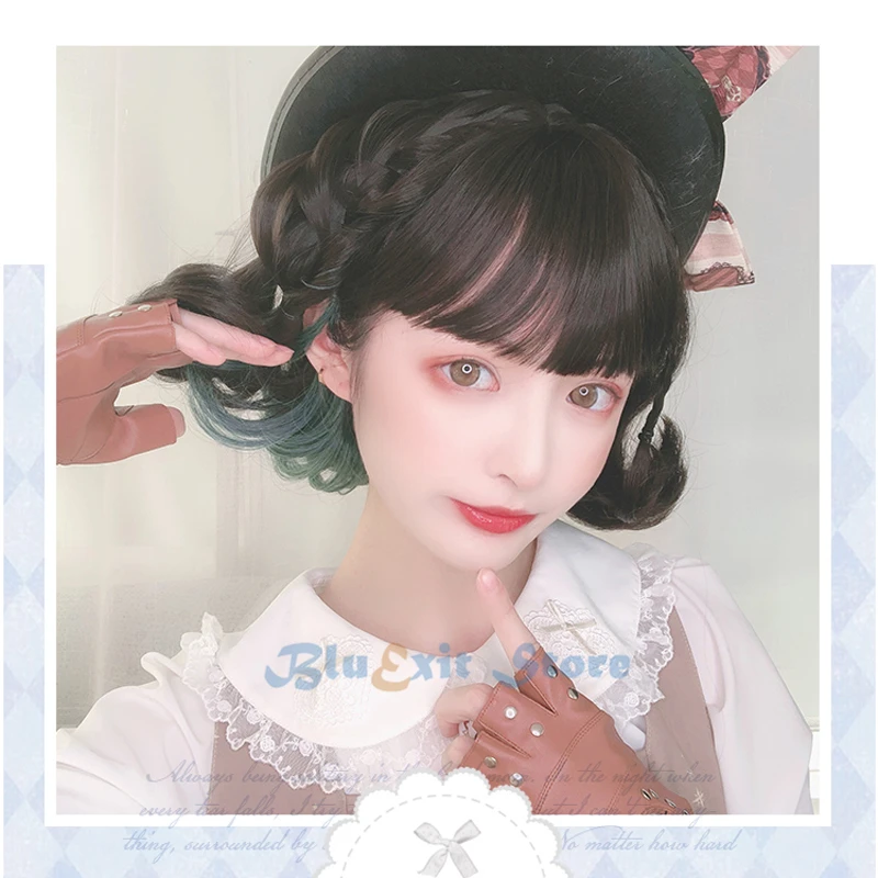Смешанный черный зеленый парик Лолиты в стиле Харадзюку сладкий БОБО короткие кудрявые синтетические волосы обратная кудрявая челка ежедневно для взрослых девушек