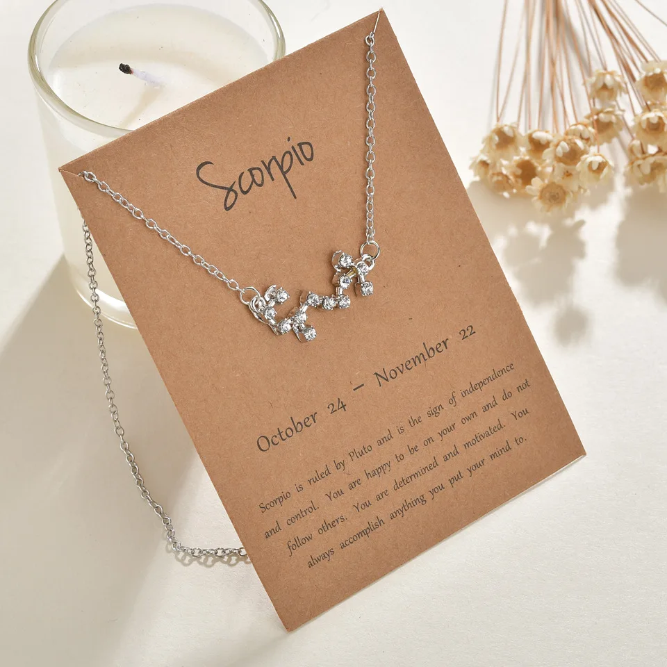 Ожерелье и подвеска Chandler из сплава с 12 знаками Зодиака, кубический циркон, астрология, созвездия, звезда, цепочка до ключицы, ожерелье на день рождения