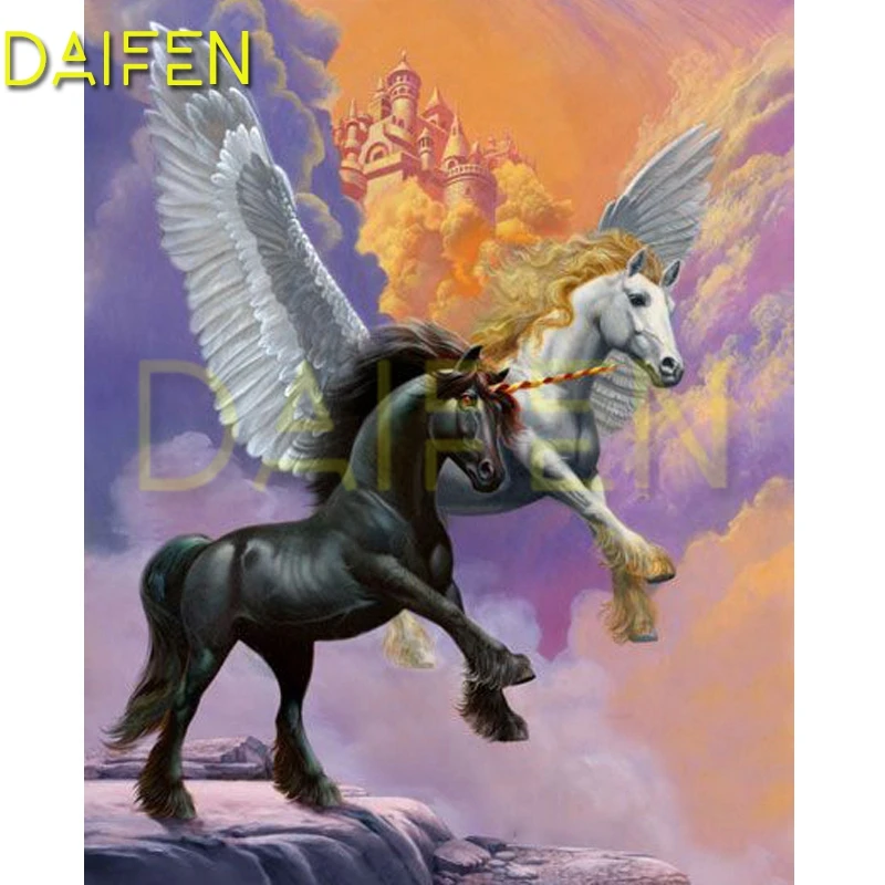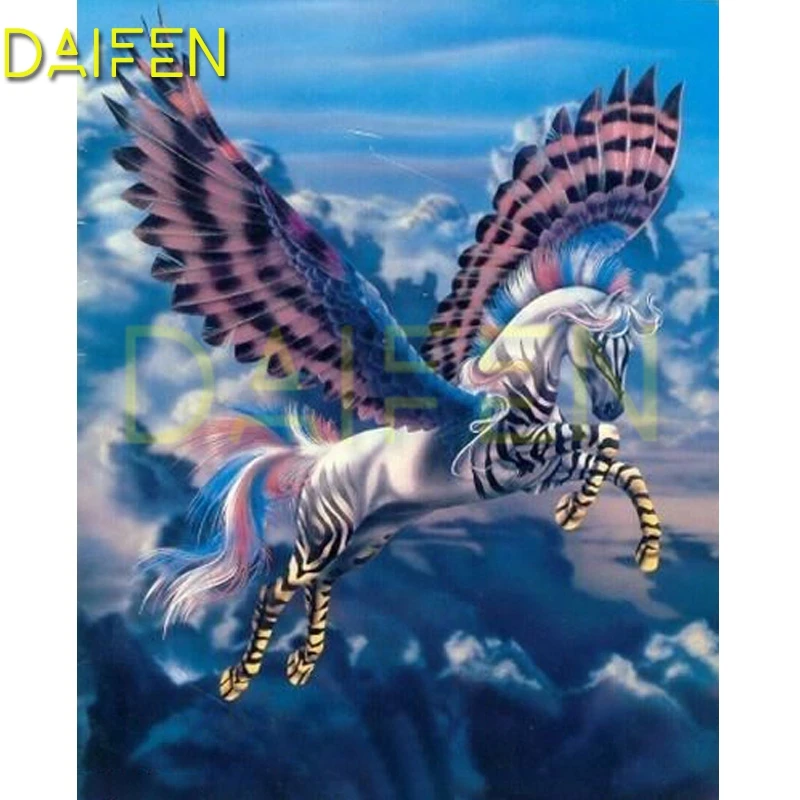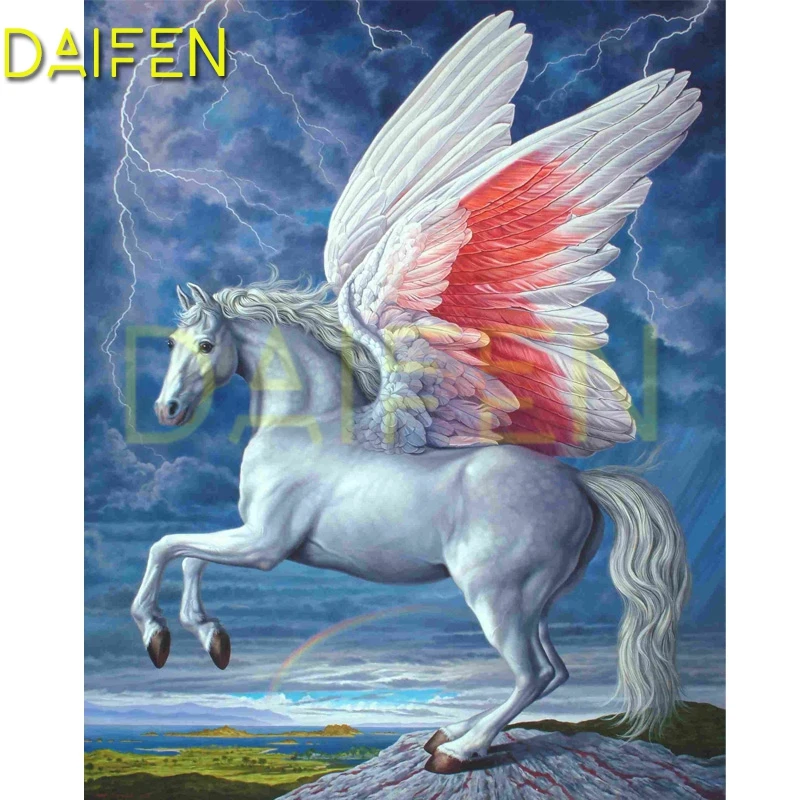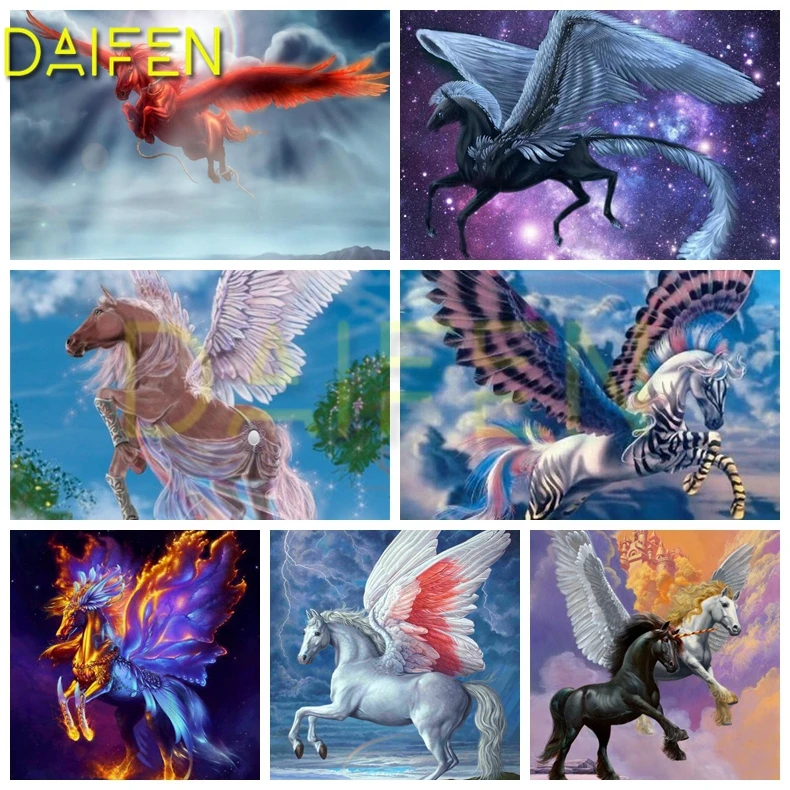 Алмазная 3D-картина сделай сам, вышивка крестиком, лошади, единорог, полная круглая Алмазная мозаика, перьевые крылья