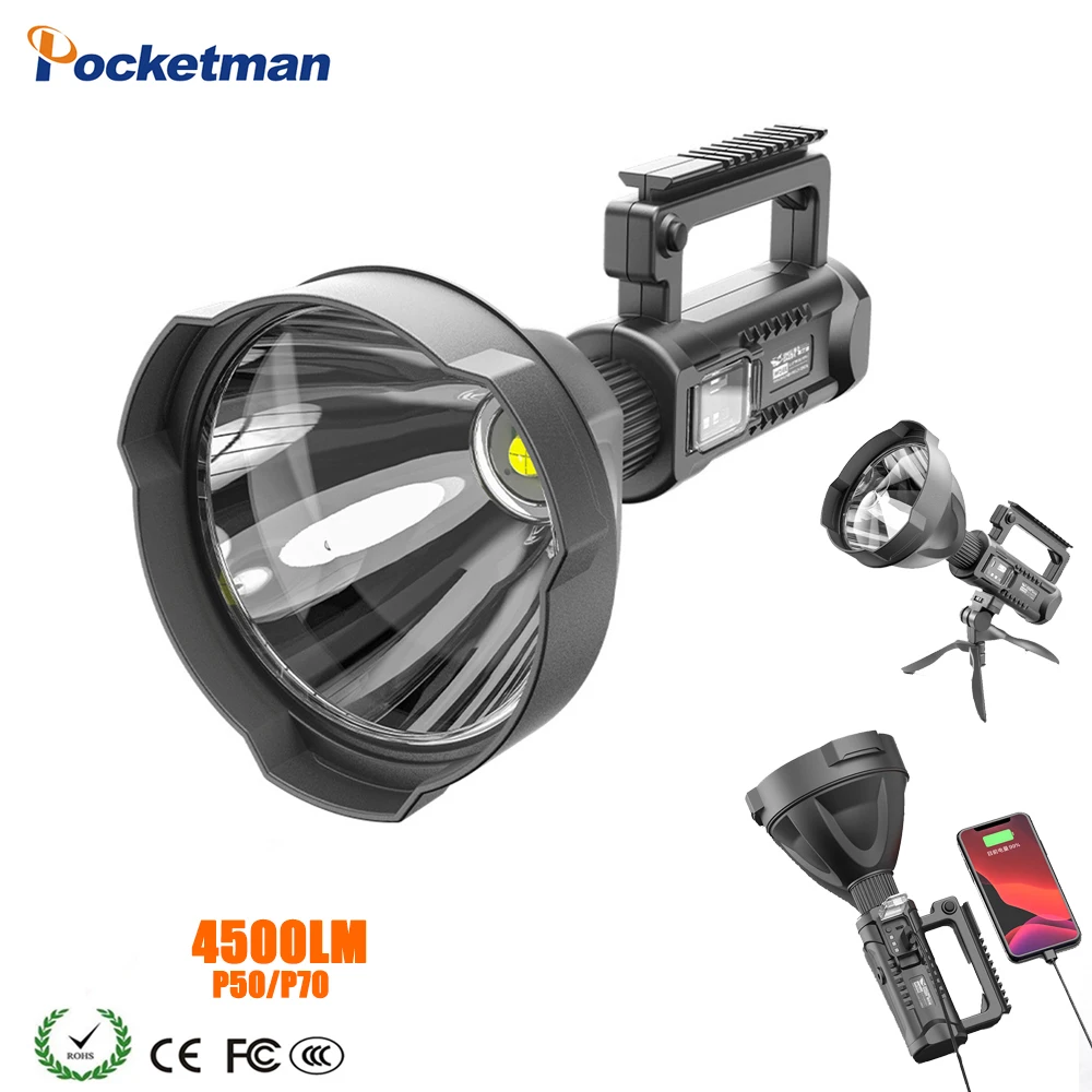 Сверхъяркий перезаряжаемый светодиодный портативный фонарик прожектор P50 P70 кронштейн для крепления луча фонарик большой емкости