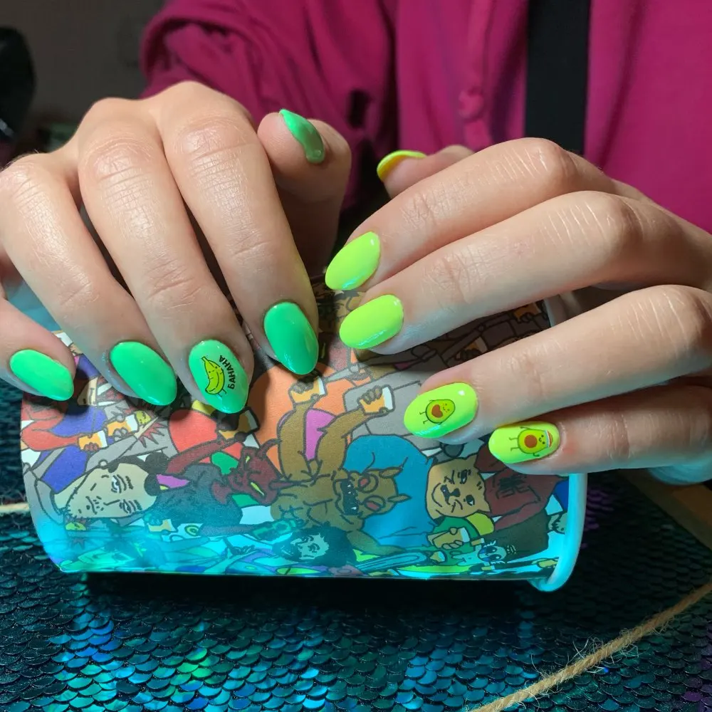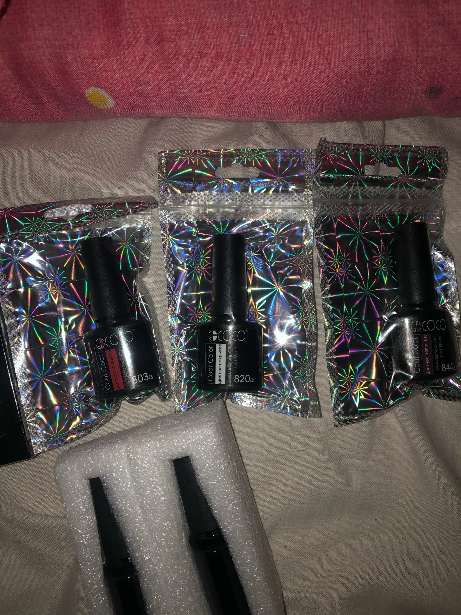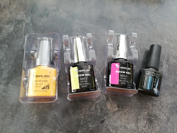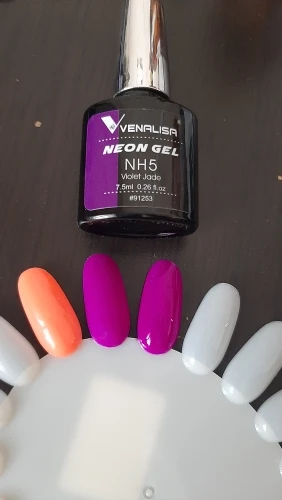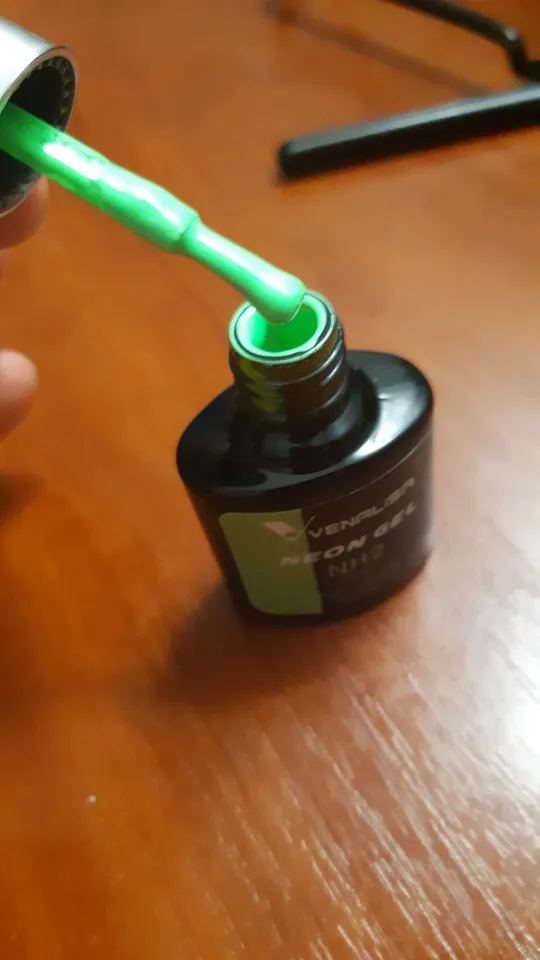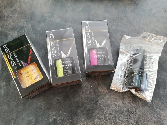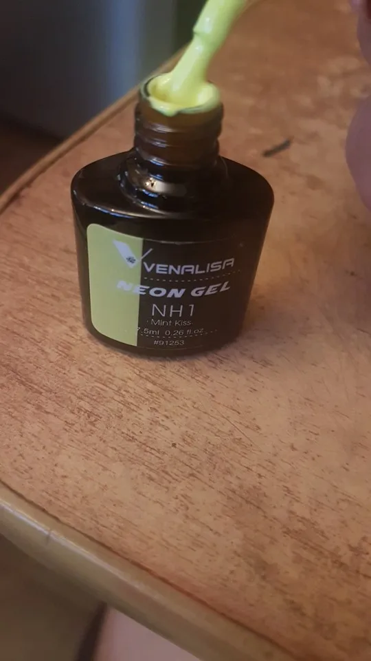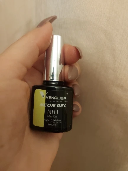Гель как в описании, немного менее неоновый, но красивый! Хорошая плотность и покрытие, полная стеклянная бутылка. Хорошая упаковка и продавец супер, как всегда! Я на фото ..