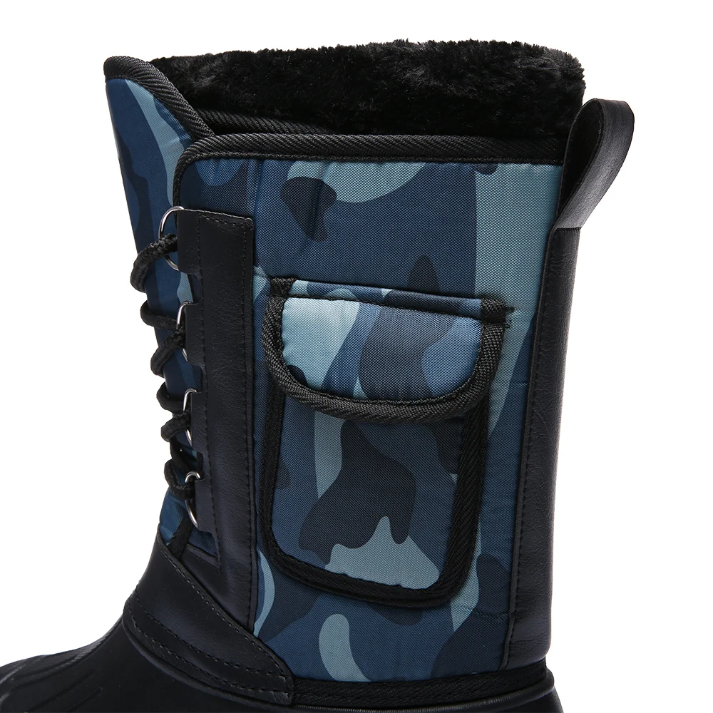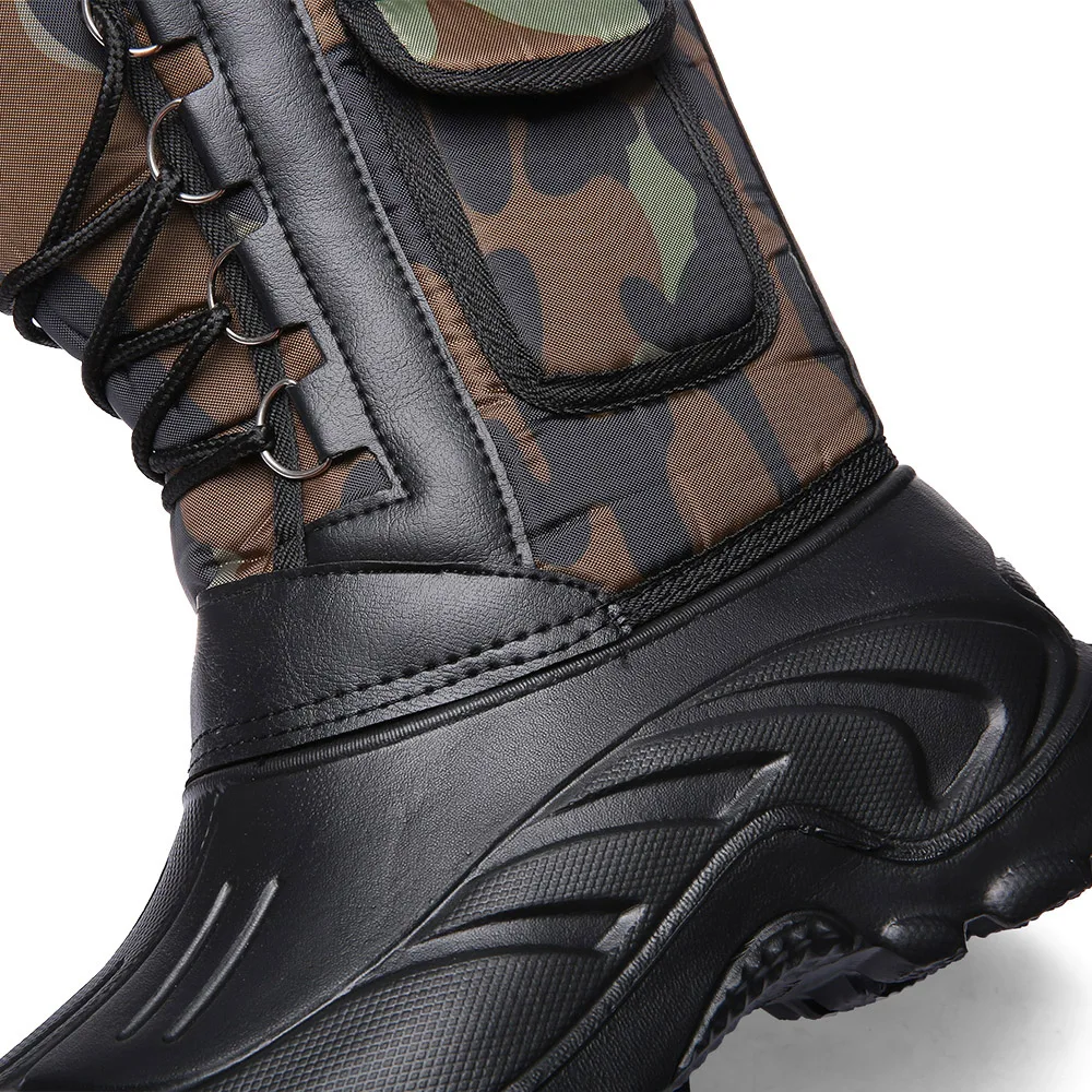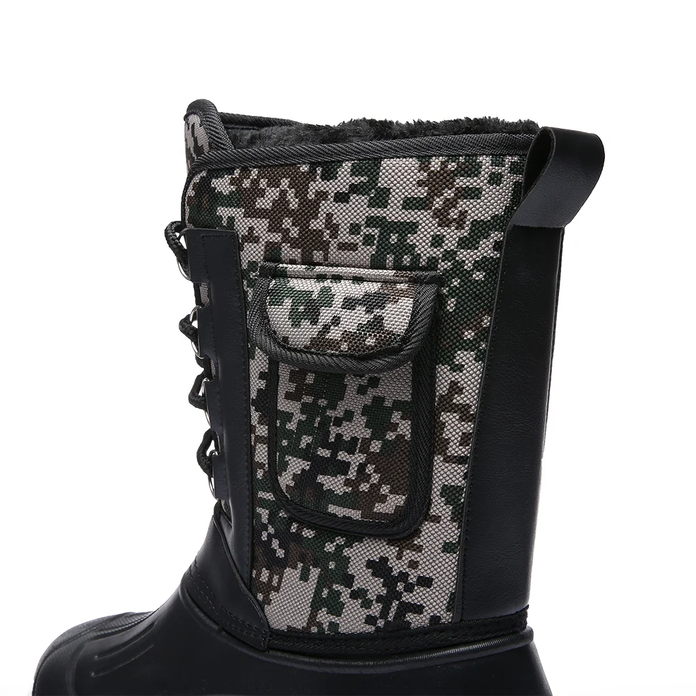Новые зимние камуфляжные зимние мужские рандомные водонепроницаемые с мехом плюшевые теплые мужские повседневные рабочие мотоциклетные ботинки до середины икры