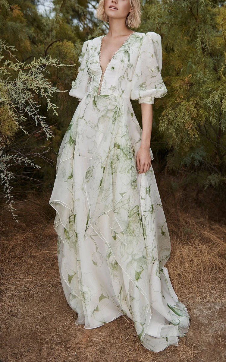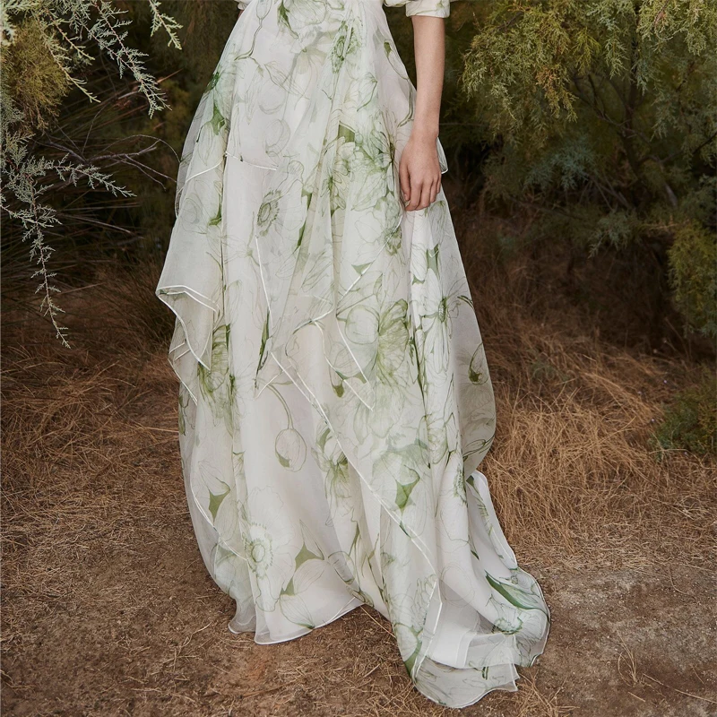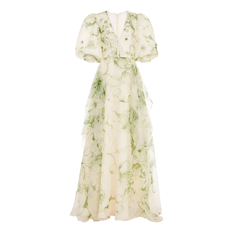 Женское винтажное Плиссированное длинное платье с v-образным вырезом и рукавами-фонариками, лето 2020, дизайнерское элегантное платье макси с цветочным принтом