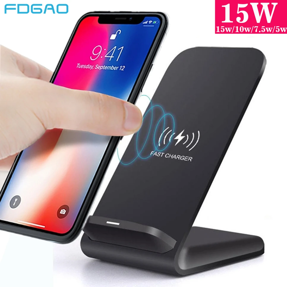 Беспроводное зарядное устройство FDGAO QI с подставкой для быстрой зарядки 15 Вт для Samsung S21 S20 S10 Quick Charge Type C для iPhone 13 12 11 Pro X XS XR 8