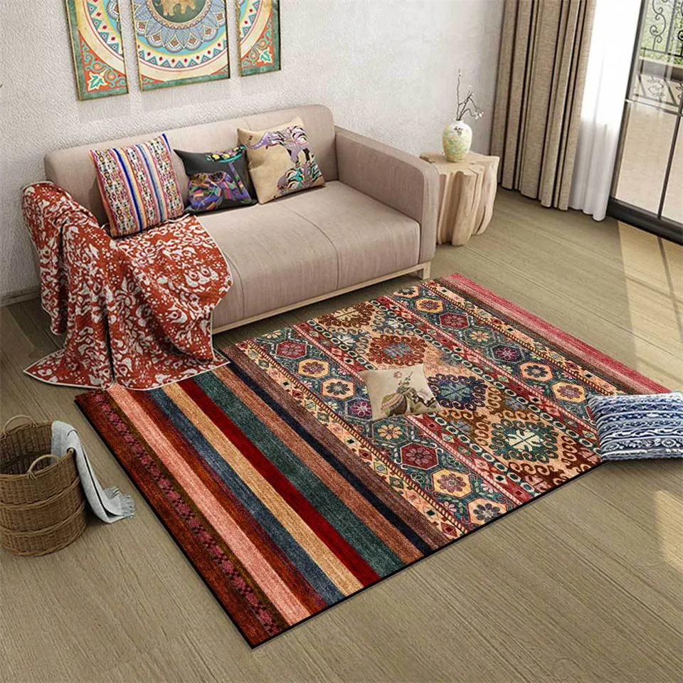 Название: этнический стиль Темный Красочный геометрический полосатый коврик для спальни в американском стиле винтажный Абстрактный Коврик для гостиной прикроватный коврик материал: полиэстер Область применения: гостиная, спальня, детская комната, детская комната, кухня, ванная комната, количество столовой: 1 шт. упаковка: полиэтиленовый пакет преимущество: не выцветает, не скользит, легко моется