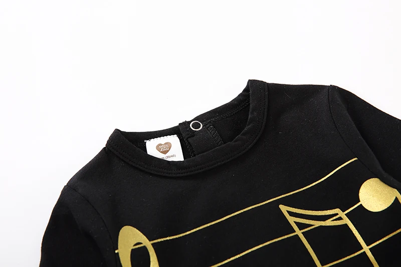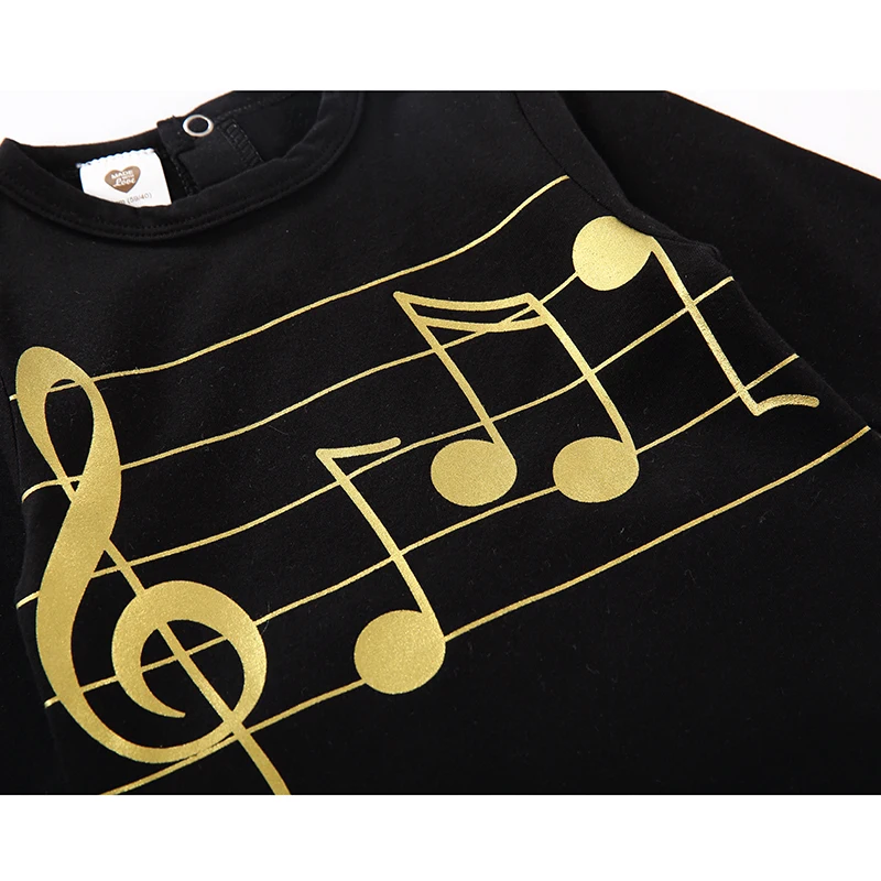Боди для малышей; Пижамы; Детская одежда с длинными рукавами; Детская одежда; Черный комбинезон для малышей; Одежда для мальчиков и девочек с золотой музыкой; Детские пижамы