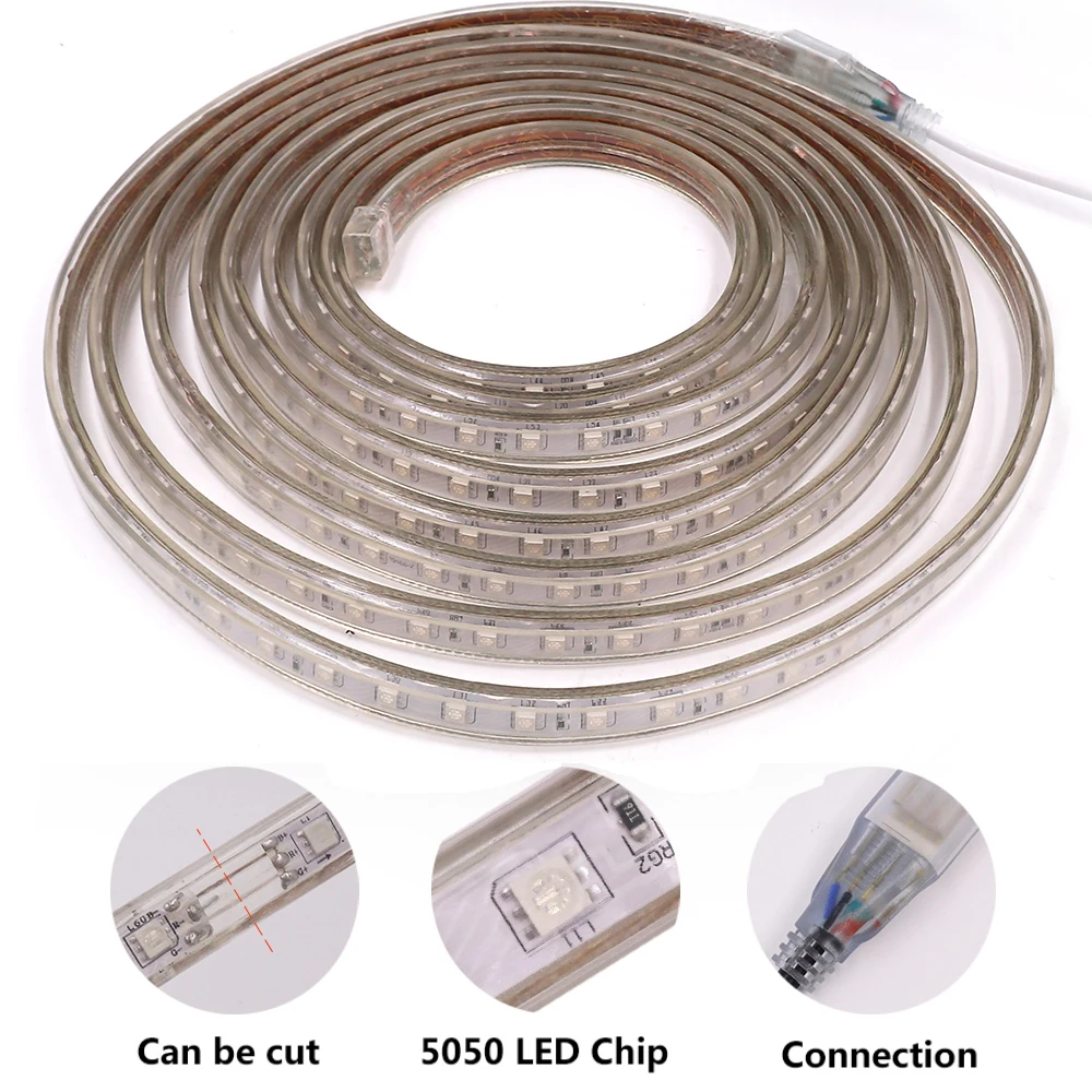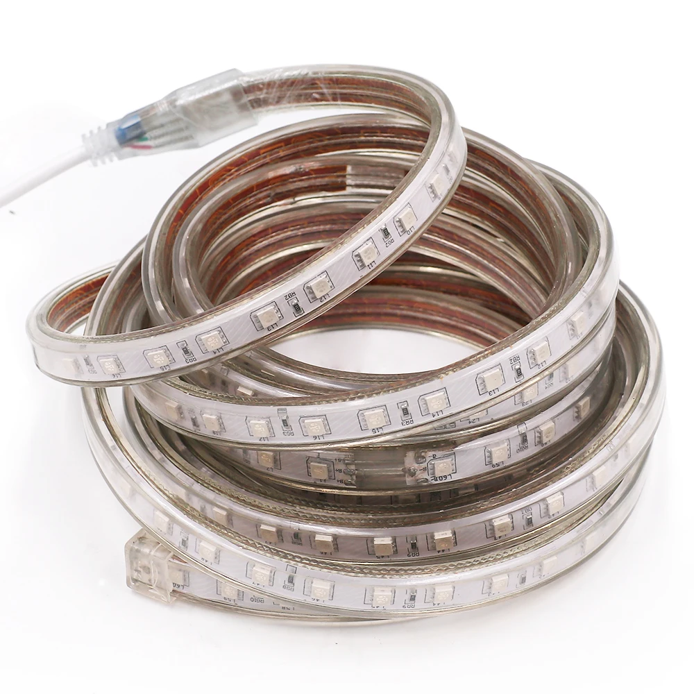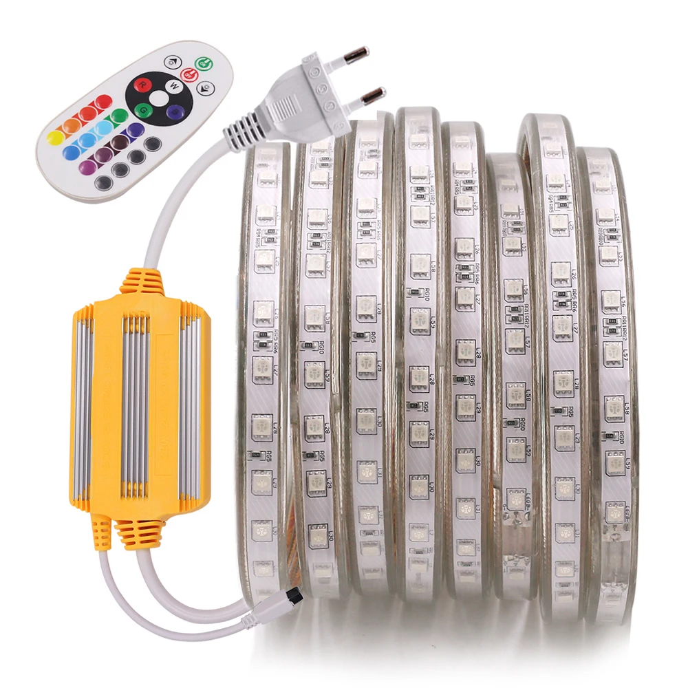 Высокая яркость 5050 Светодиодная ленсветильник 220 В пульт дистанционного управления RGB 60 светодиодовм гибкая светодиодная лента украшение дома Водонепроницаемый Контроллер