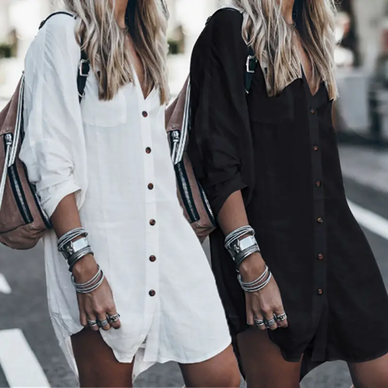 Женское винтажное платье-рубашка свободного покроя, черное или бело...