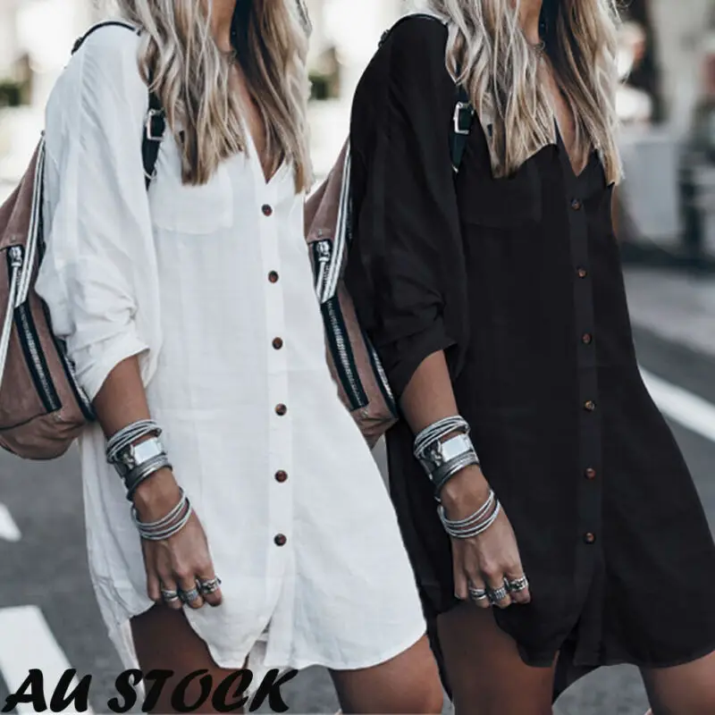 Рубашка женская с длинным рукавом, модная длинная свободная блузка,...