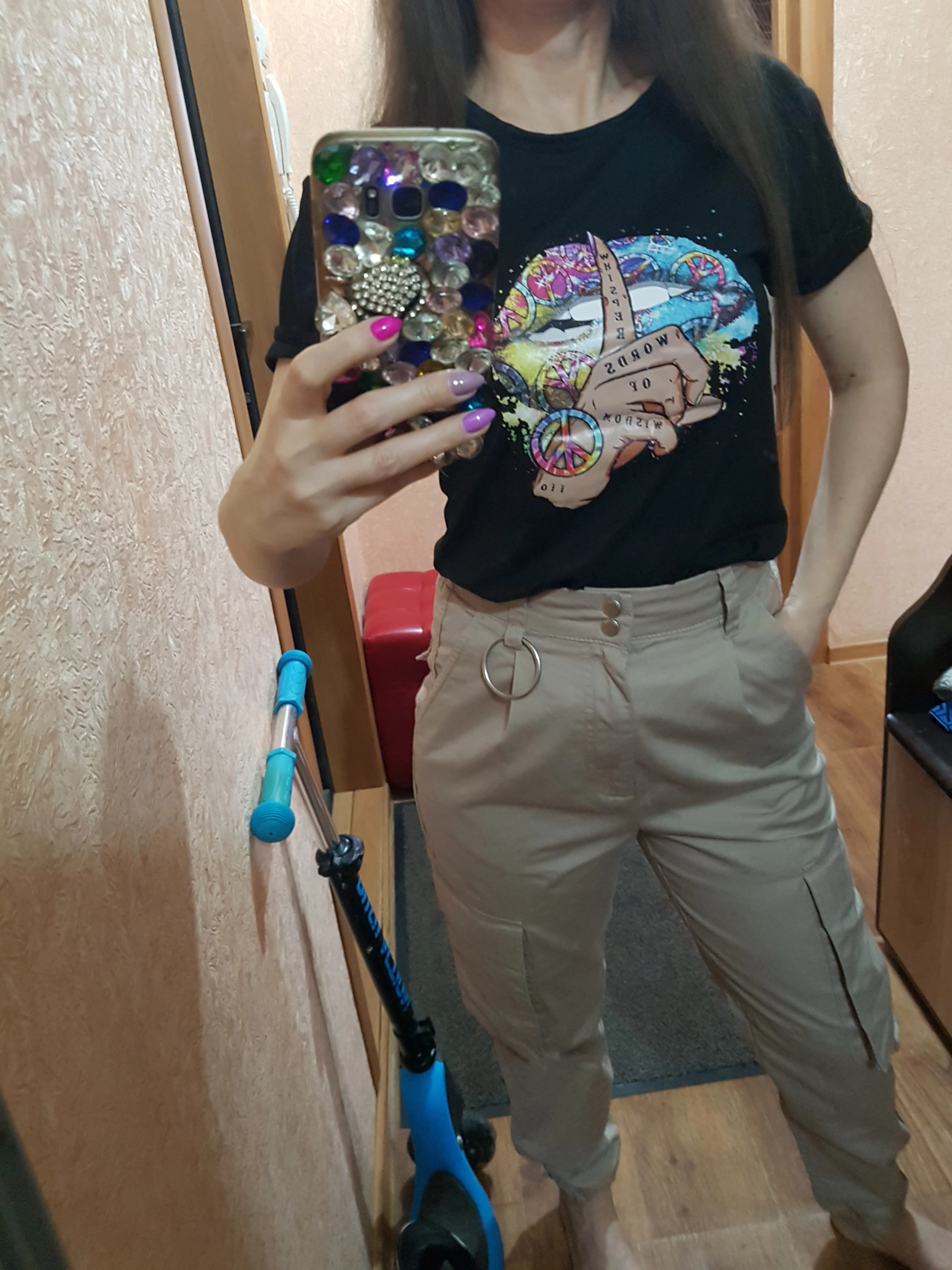 Футболка шла до Красноярска две недели,быстро,спасибо продавцу! На размер 42,44 заказала XS,по размеру подошло! Принт на черной футболке немножко бледный,не так как на картинке! Заказывала желтую с губами вот на ней яркий принт!)Заказом довольна, футболка супер,ткань мягкая к телу,но не хлопок!