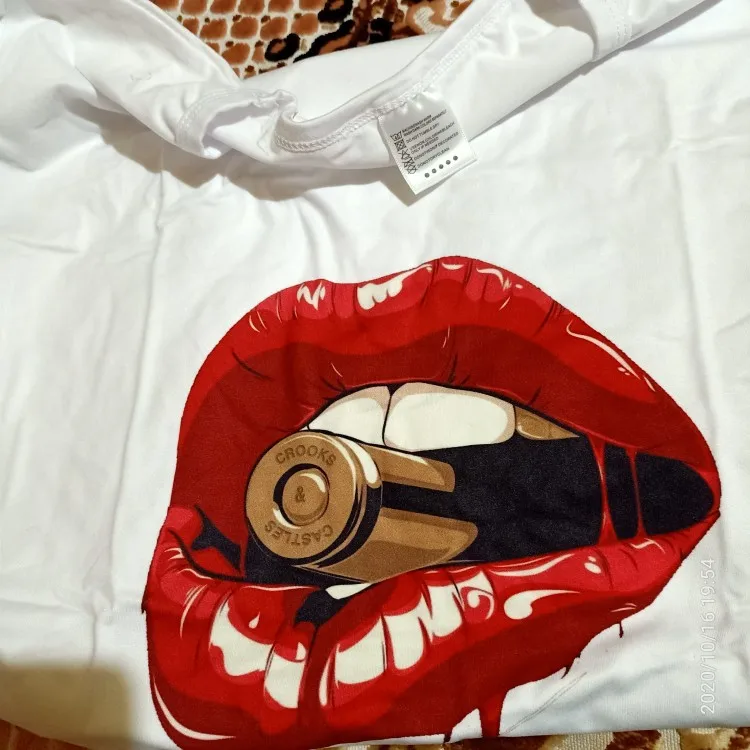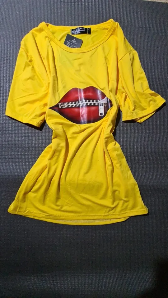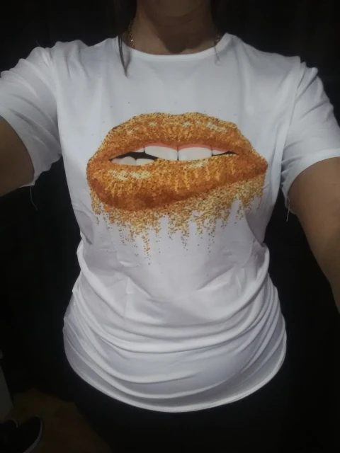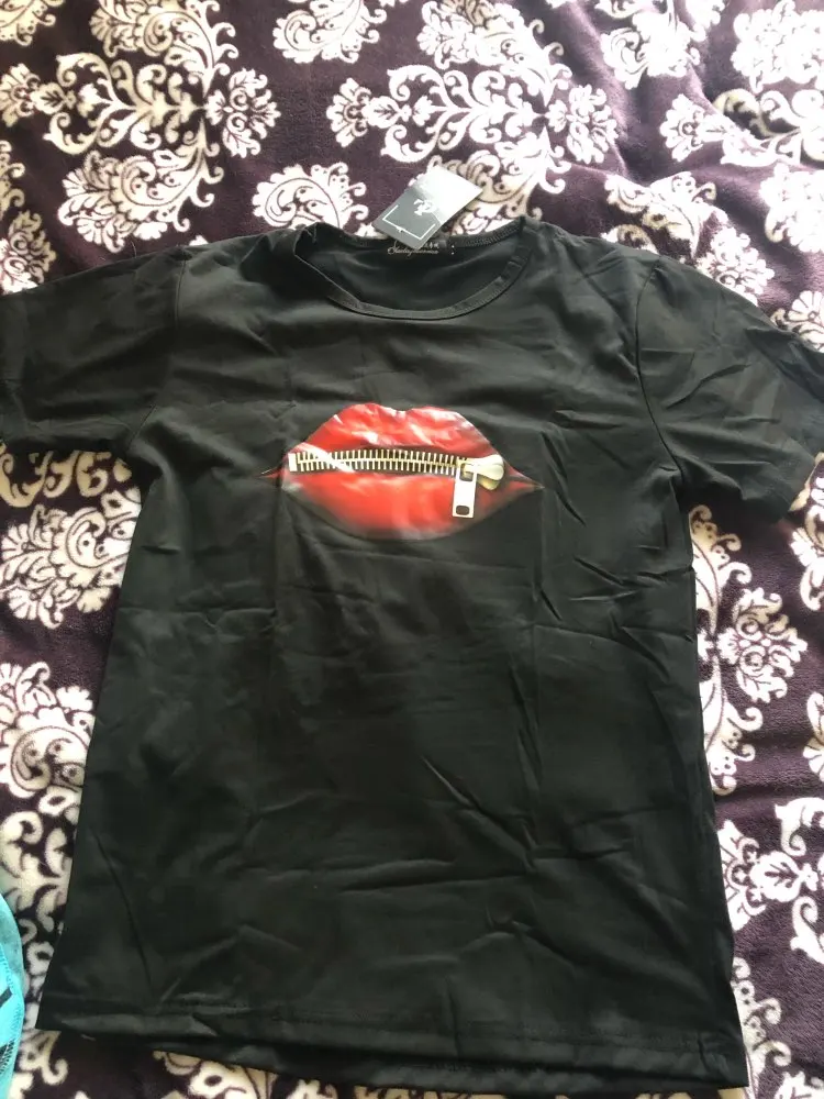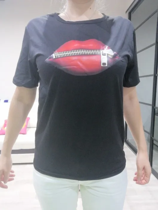 Модная женская Повседневная футболка с блестками и красными губами, футболки с коротким рукавом 2020, винтажная креативная футболка на молнии с губами, Прямая поставка