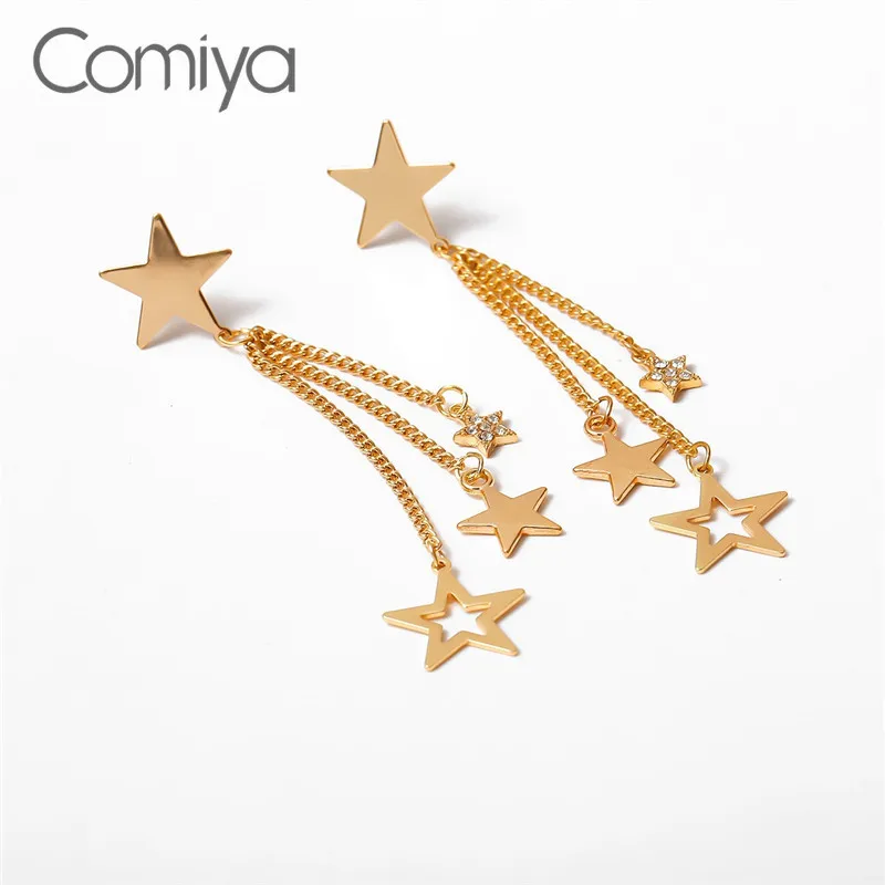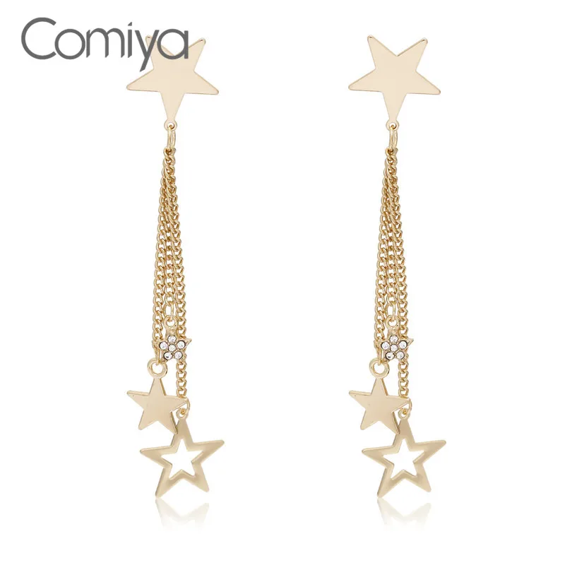 Серьги-подвески Comiya женские, длинные ювелирные украшения золотого и серебряного цвета со звездами из цинкового сплава