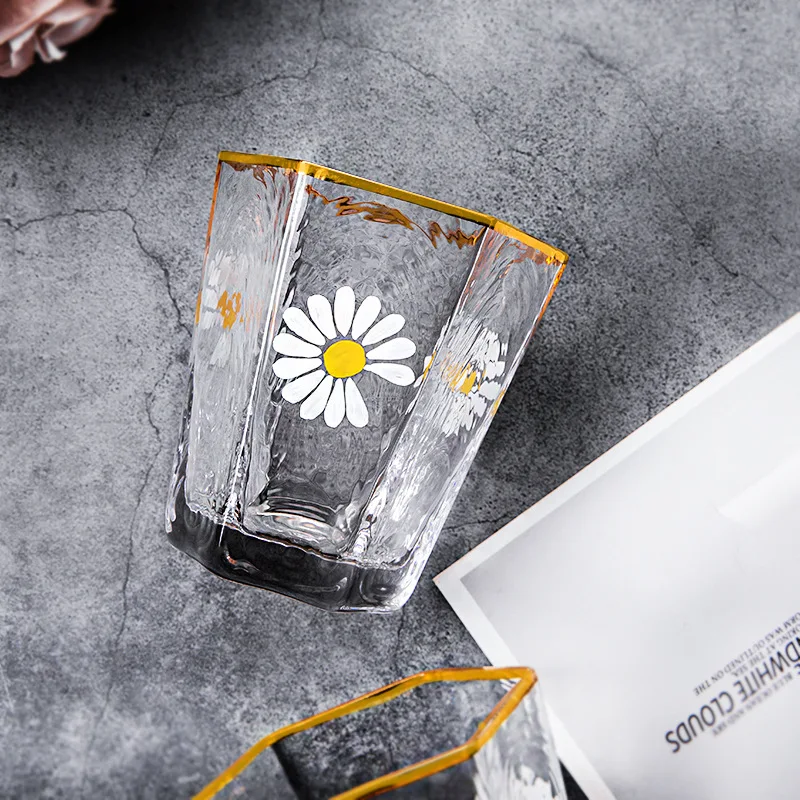 Ручная роспись в японском Ретро сельском стиле шестисторонняя маленькая Маргаритка бокал для ресторана бокал для шампанского бокал для вина бокал горлышко
