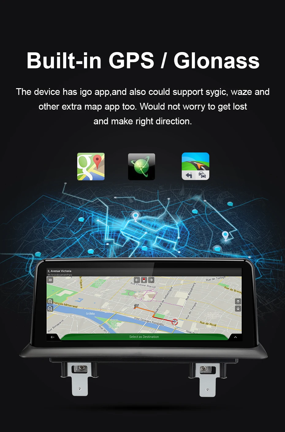 >>>Built-in GPS/Glonass.the device has igo map app,and could suppport sygic ,waze and other extra app too,would not worry about to get lost and make right direction.