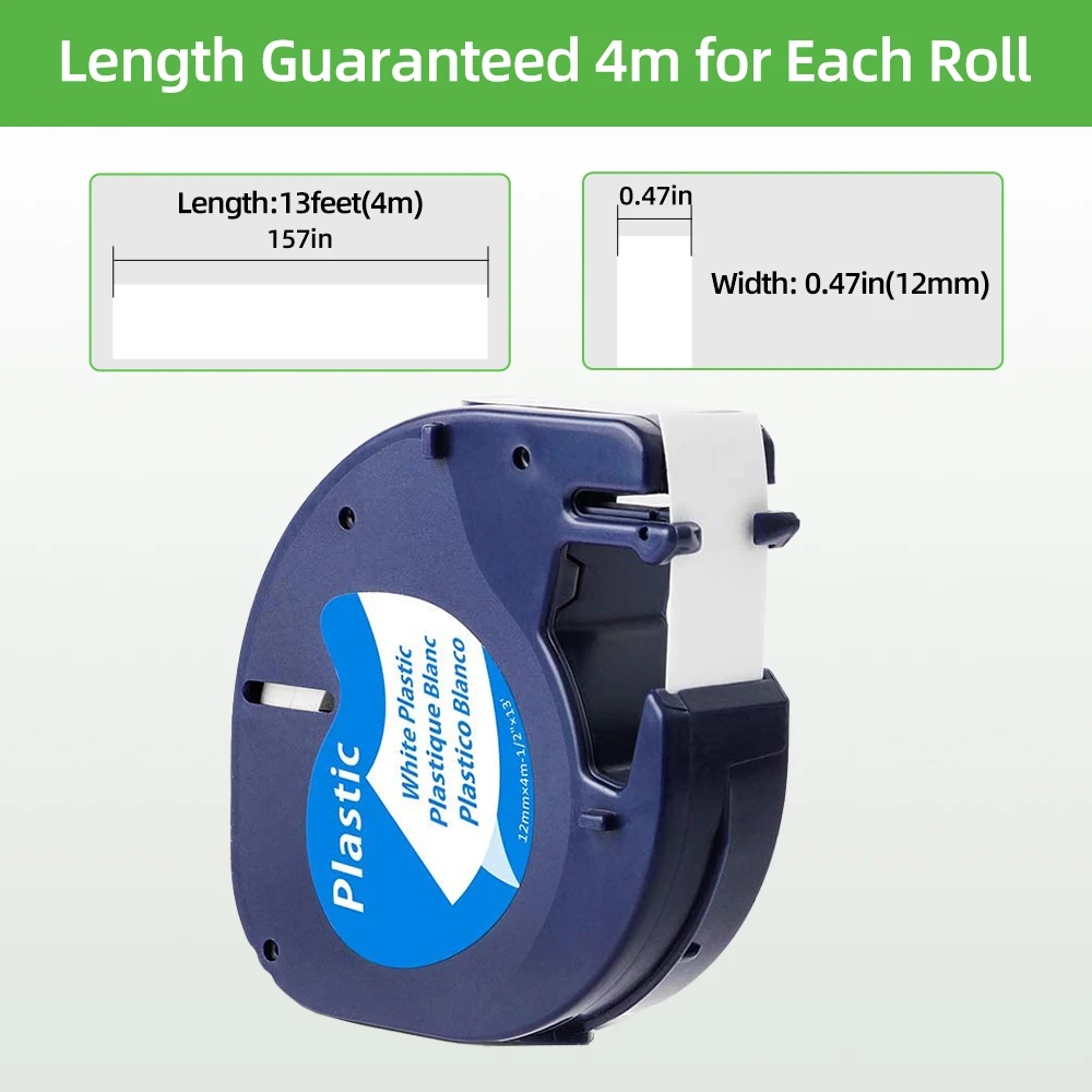 1 шт., пластмассовая лента 91201, 91200, 12 мм, черно-белая, совместимая с DYMO leretroag, LT 91331, LT91201, 12267, 18769, 18771, LT-100H, LT-100T