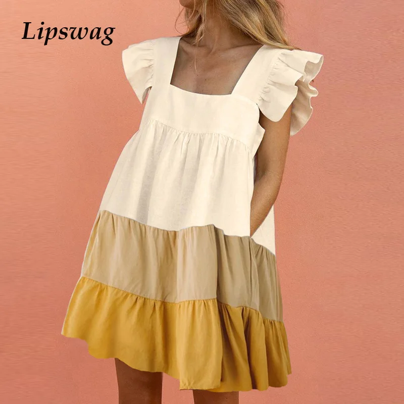 Женское платье с коротким рукавом, летнее винтажное ТРАПЕЦИЕВИДНОЕ вечерние в горошек, с оборками и V-образным вырезом, размеры 3XL
