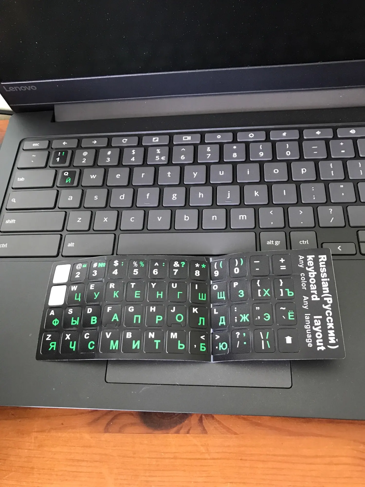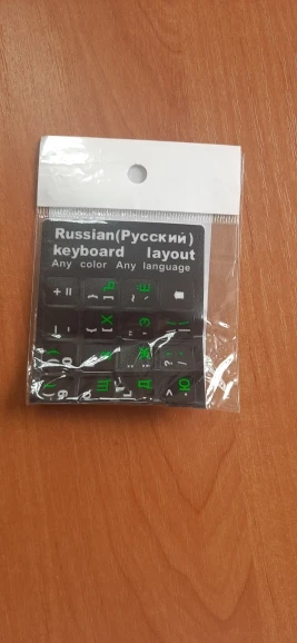 доставка около месяца Укрпоштой. наклейка хорошего качества, ис плотного материала хорошо клеятся. мне пришлось каждую клеить с помощью пинцета. как будут быстро стираться буквы ещё не знаю. вблизи они очень заметны так как имеют глянец по сравнению с моей клавиатурой.