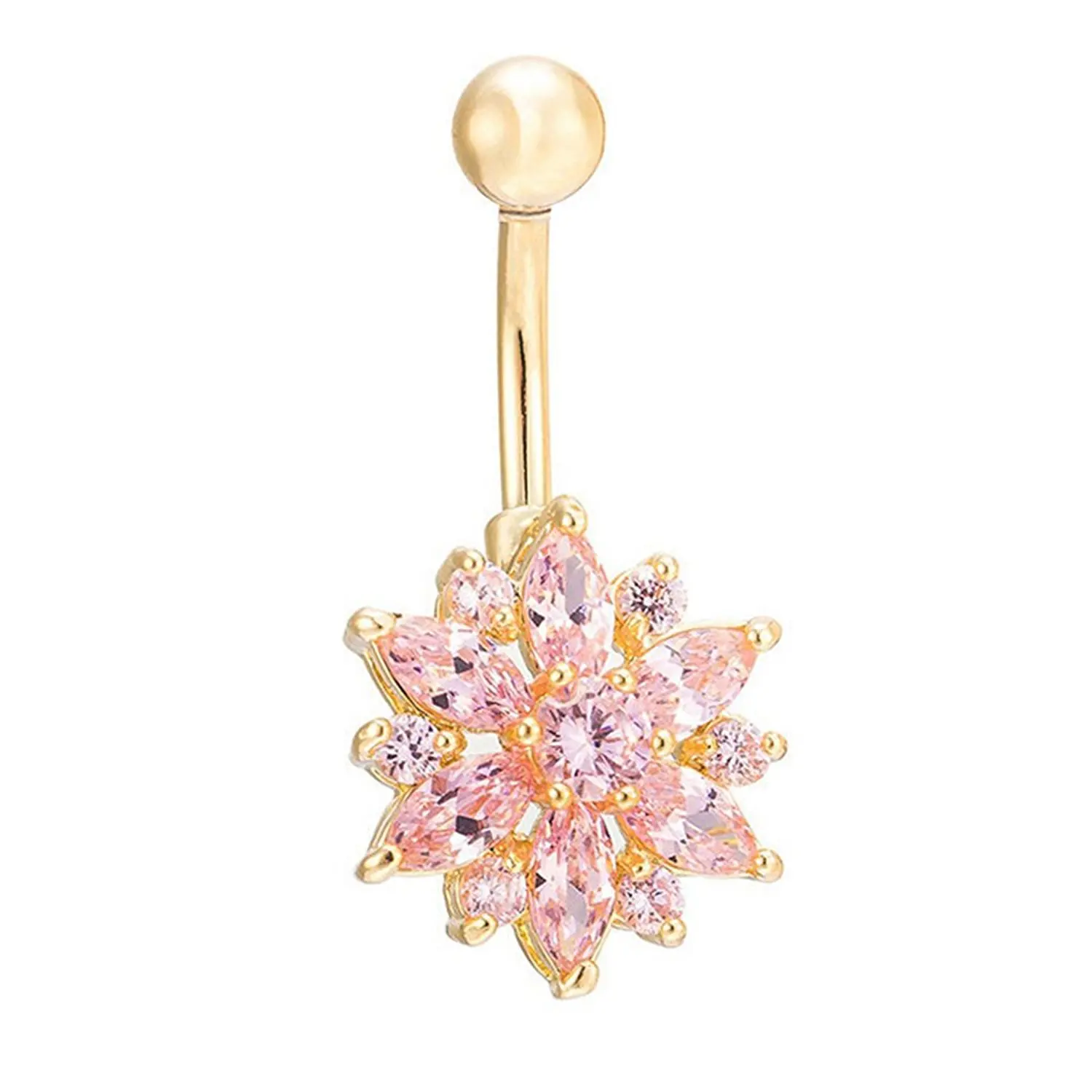 Модный пирсинг для живота с хрустальными цветами 14G, кольцо из нер...