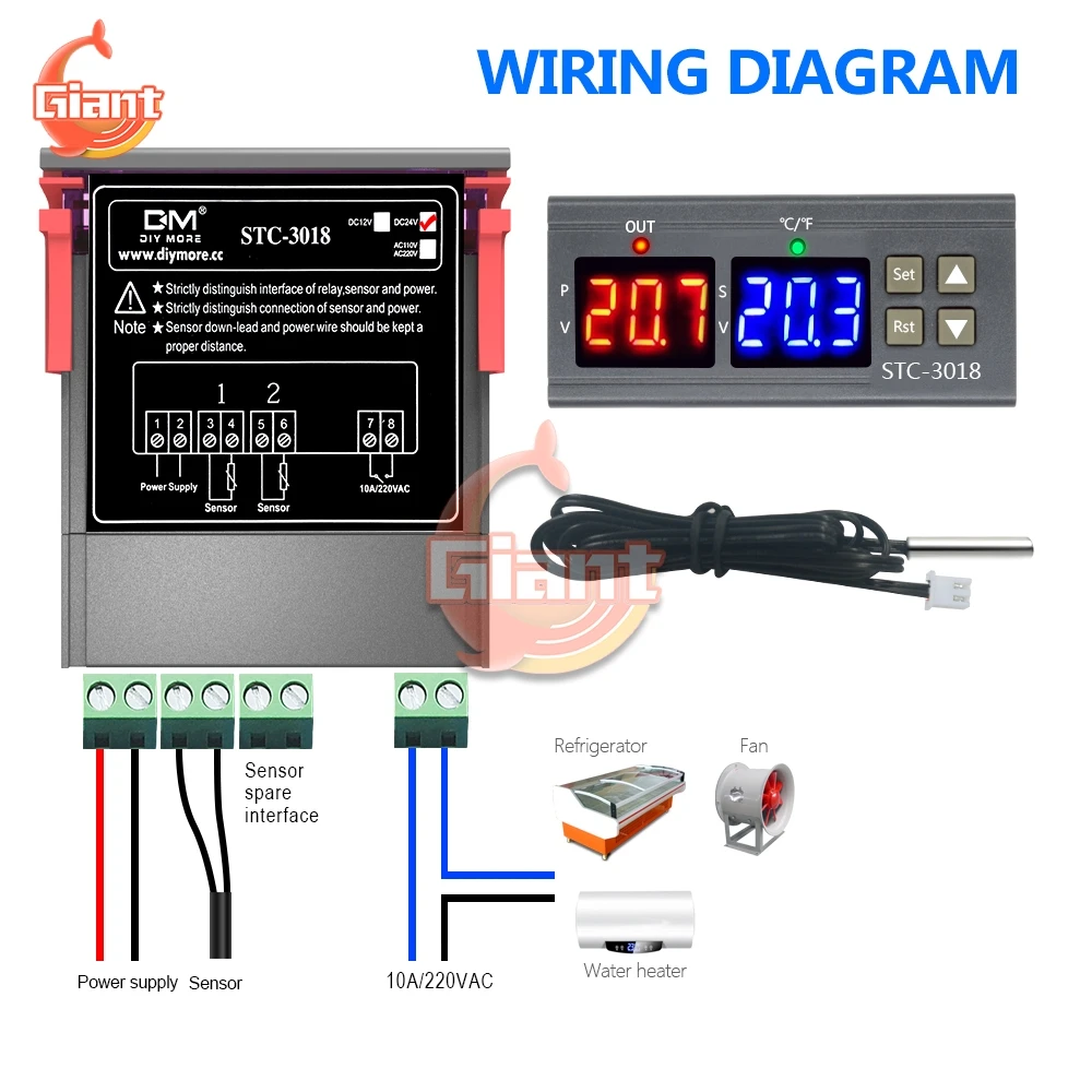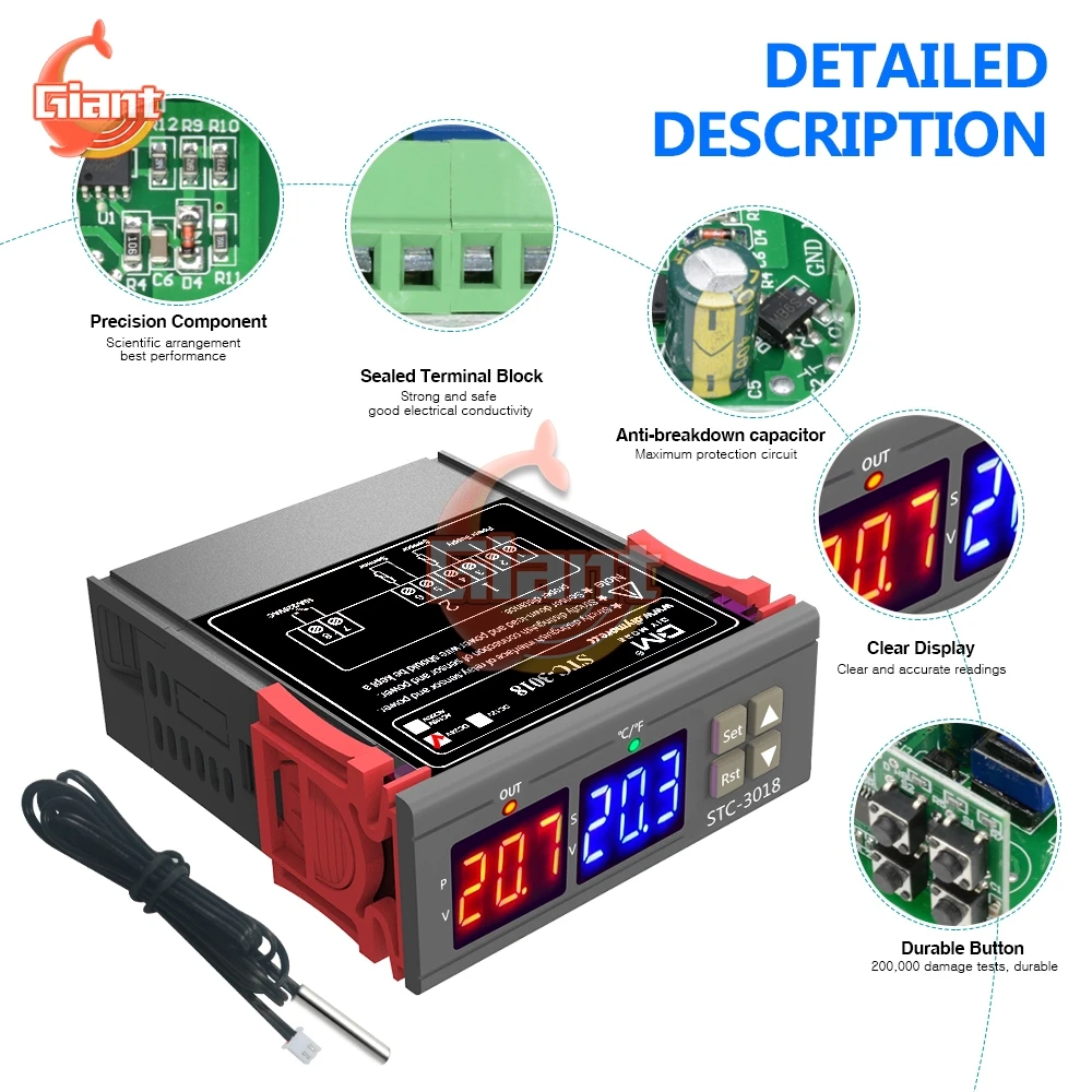 STC-3018 DC 24V Цифровой термостат регулятор температуры 10A с NTC датчик зонда терморегулятор для инкубатора дома на открытом воздухе
