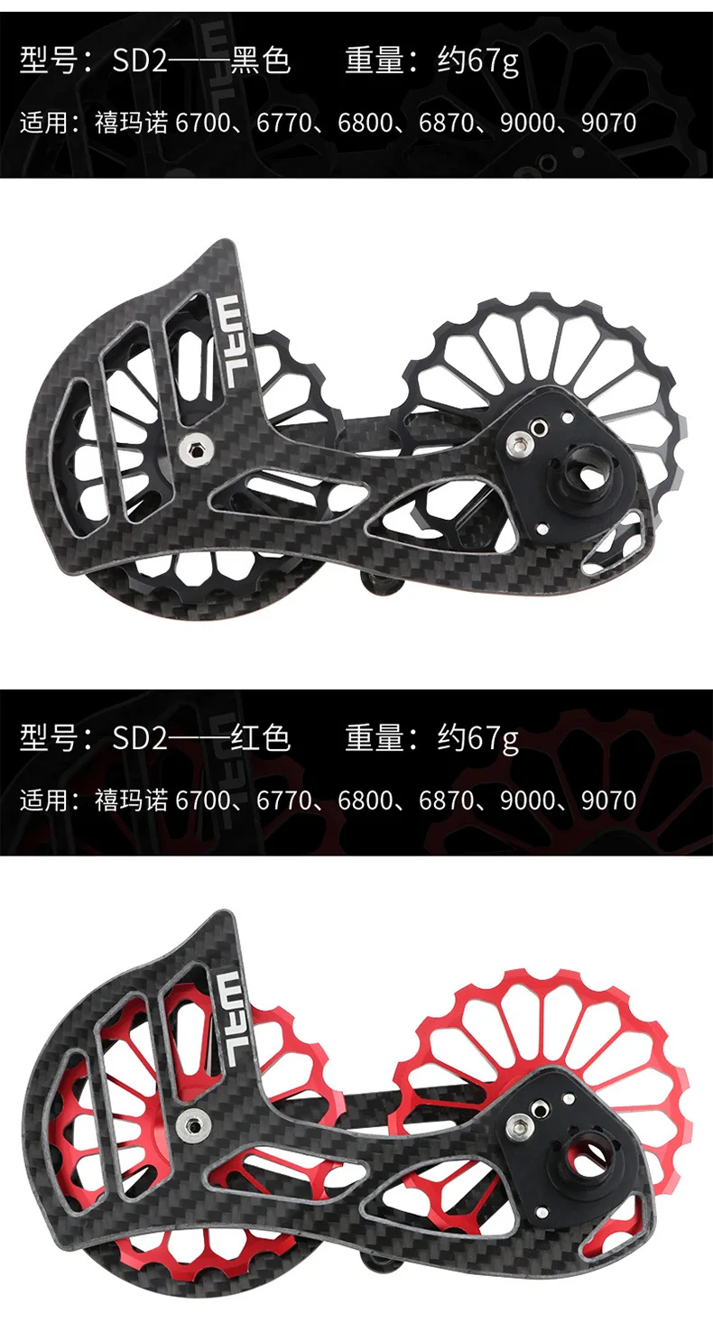 Характеристики: 5800/6800 моделей для верхней и нижней части 17T; 7000/8000 моделей для верхней части 13T для нижней части 17TМатериал: корпус направляющего колеса из алюминиевого сплава + керамический подшипник + рамка из углеродного волокнаПрименимая система смещения: Shimano 5800/6800/6870/9000/9070 и т. д. (Приобретите соответствующий модель)