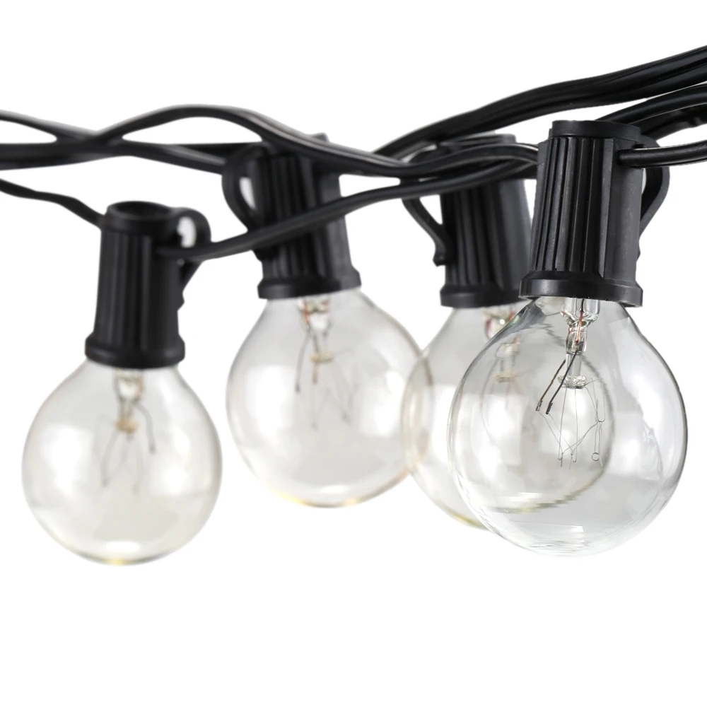 25 футов G40 круглая лампа, гирлянда с 25 прозрачными шариками, винтажные лампы для внутреннегонаружного подвесного зонтика, патио, освещение, ЕССШАВеликобритания