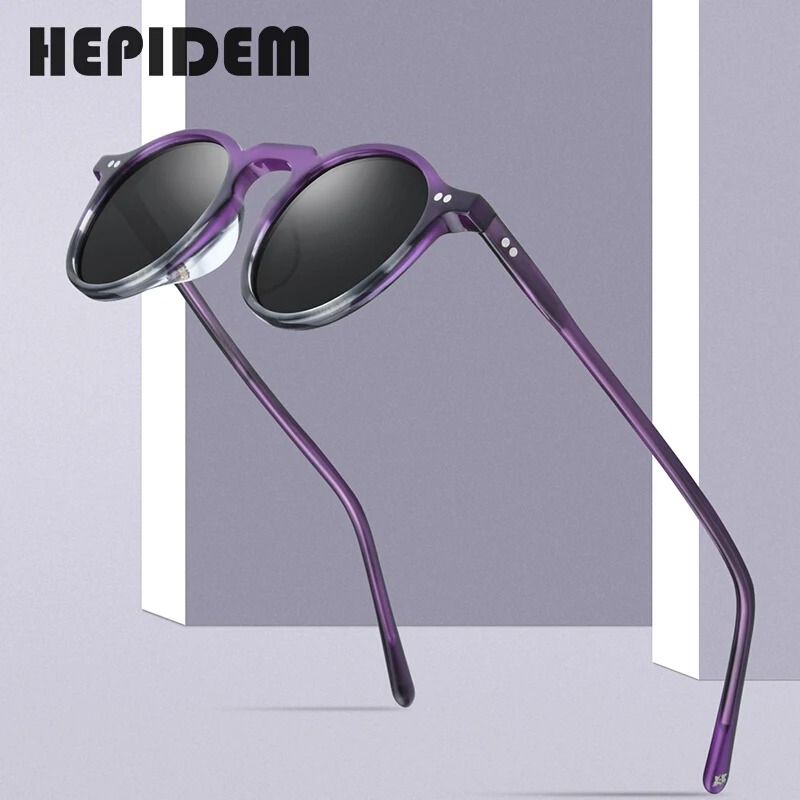 HEPIDEM Новые ацетатные Круглые Солнцезащитные очки HEPIDEM для муж...
