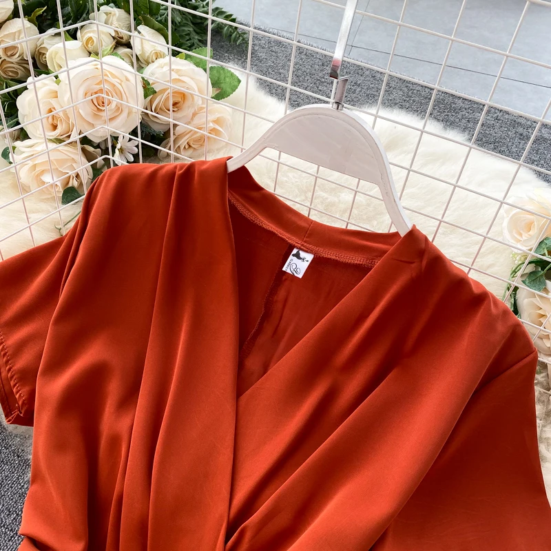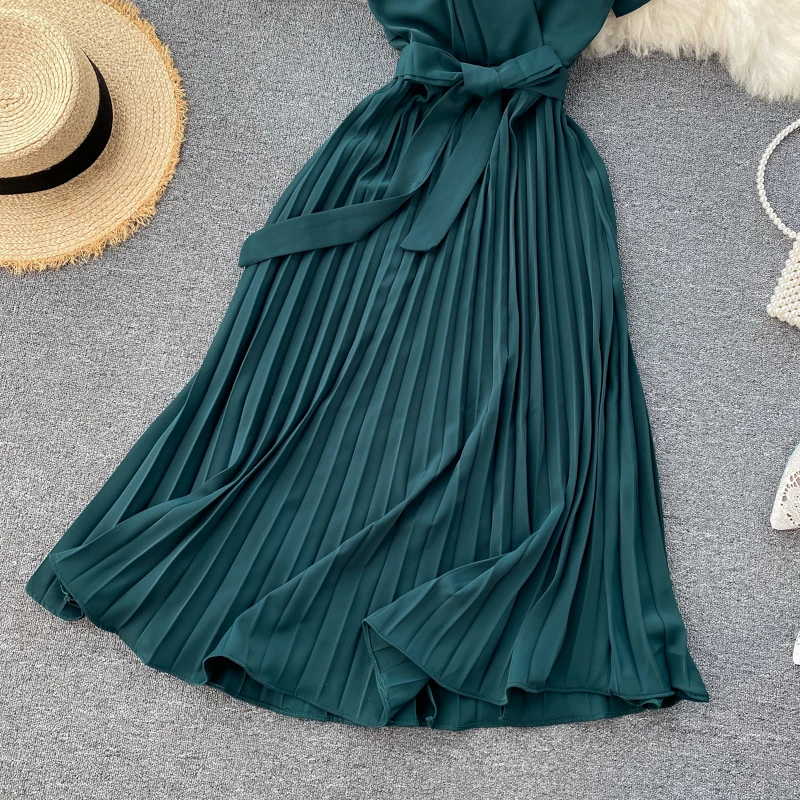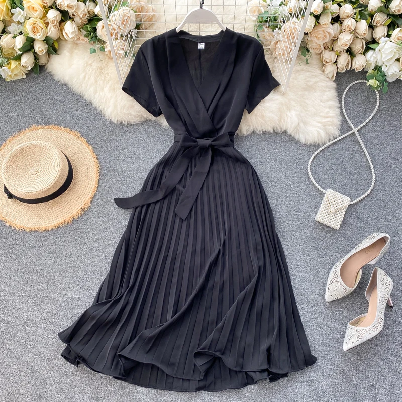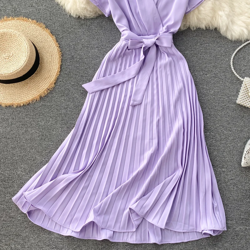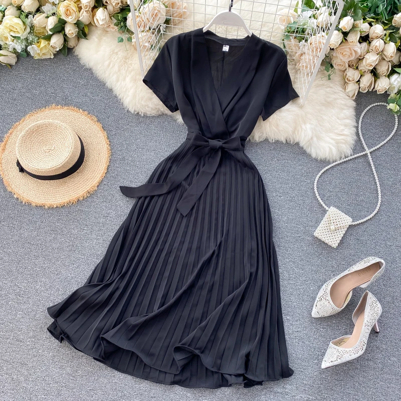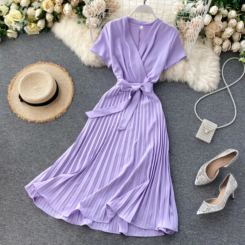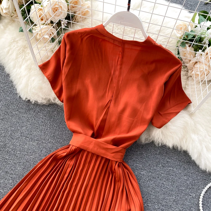 Платье YuooMuoo женское с V-образным вырезом, однотонное Бандажное Длинное Элегантное плиссированное платье средней длины, вечерний сарафан, лето 2020