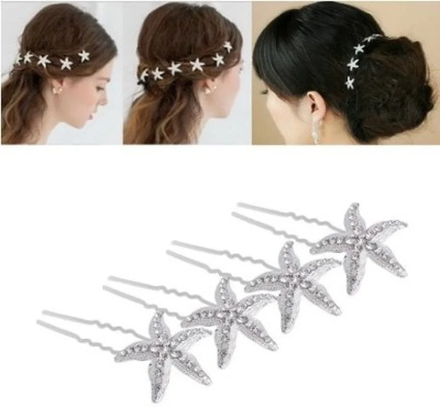 Заколка для волос U-образная в форме морской звезды, для невесты, украшения для волос, 510 шт.