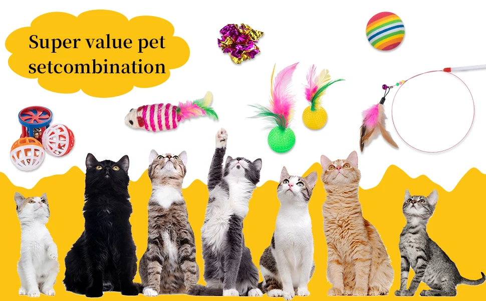 Этот разнообразный комплект игрушек подходит всем кошкам, он обеспечивает часами упражнений и развлечений для вашей кошки. Это лучший праздник и подарок на день рождения для вашей кошки и всех любителей кошек.