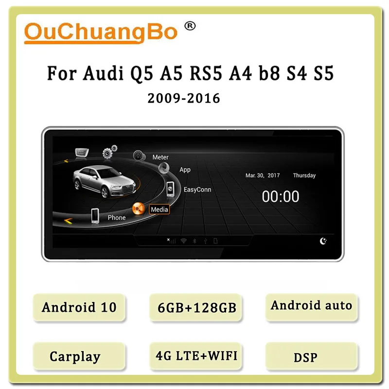 Ouchuangbo 4G Android 10 автомобильный рекордер GPS стерео для Audi A4 B8 A5 Q5 SQ5 RS5 2009-2016 Поддержка 6 гб128гб 8 ядер 1920*720 CarPlay